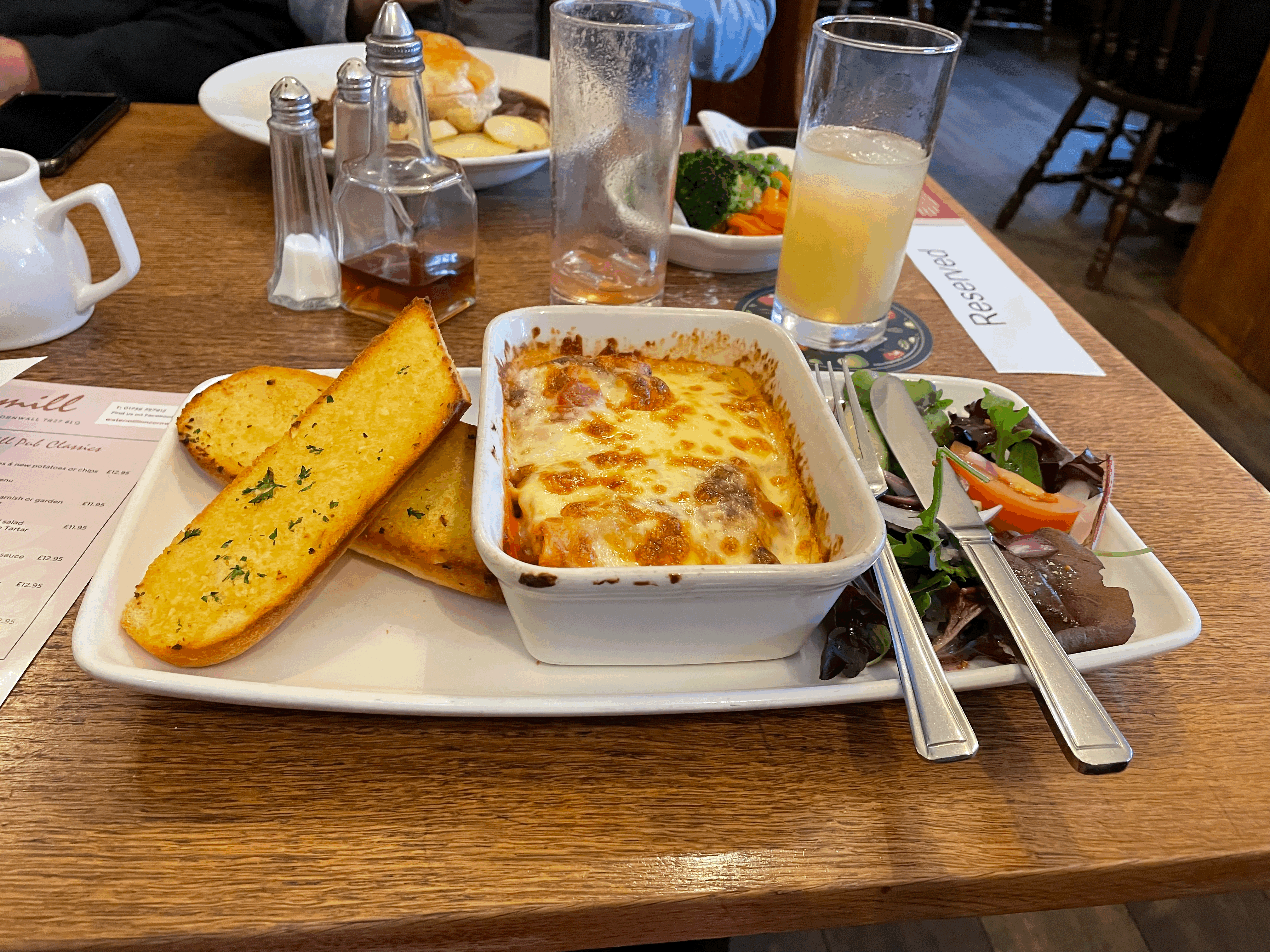 Obviously, most of the first day of our holiday was spent travelling, and we didn’t arrive at the lodge until after 6pm. However, there were one or two country pubs within a 20-minute radius, so we decided to try the lovely and quaint Watermill pub. This pub was built in the late 1700s and operated as a grain mill before later being converted and used to pump water to Trevethow Manor and the village reservoir. It then became a riding stable, a tearoom, and finally the great pub it is today that serves delicious food!