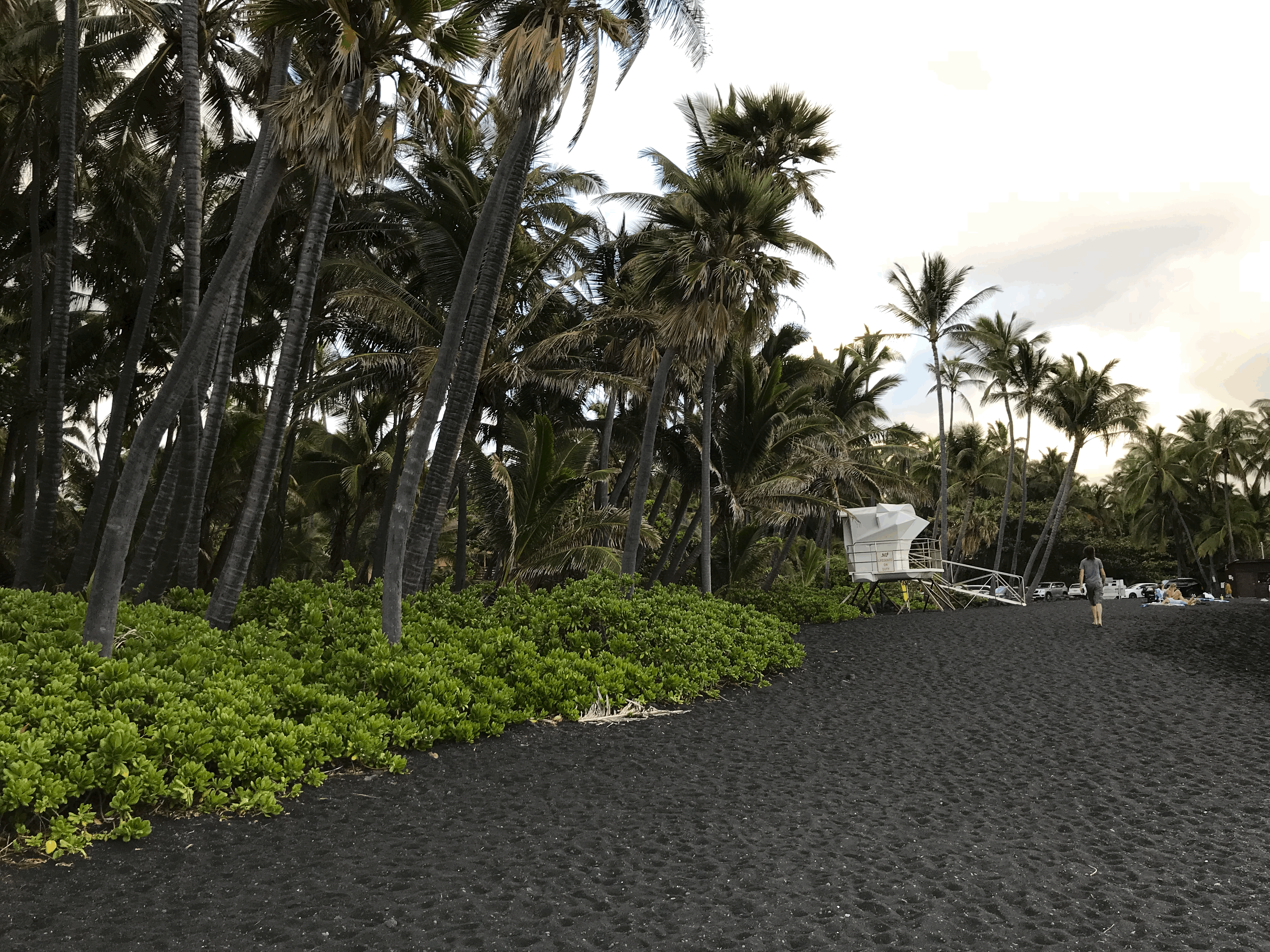 This beach was quite easily accessible and looked so different from the normal golden sandy beaches you are used to seeing in brochures and on posters of Hawaii. The sand is made up of fragments of pitch-black lava and the beach is lined with coconut trees. There is also a lifeguard present on the beach during the day and there are toilets, changing facilities, parking, and a picnic area.
