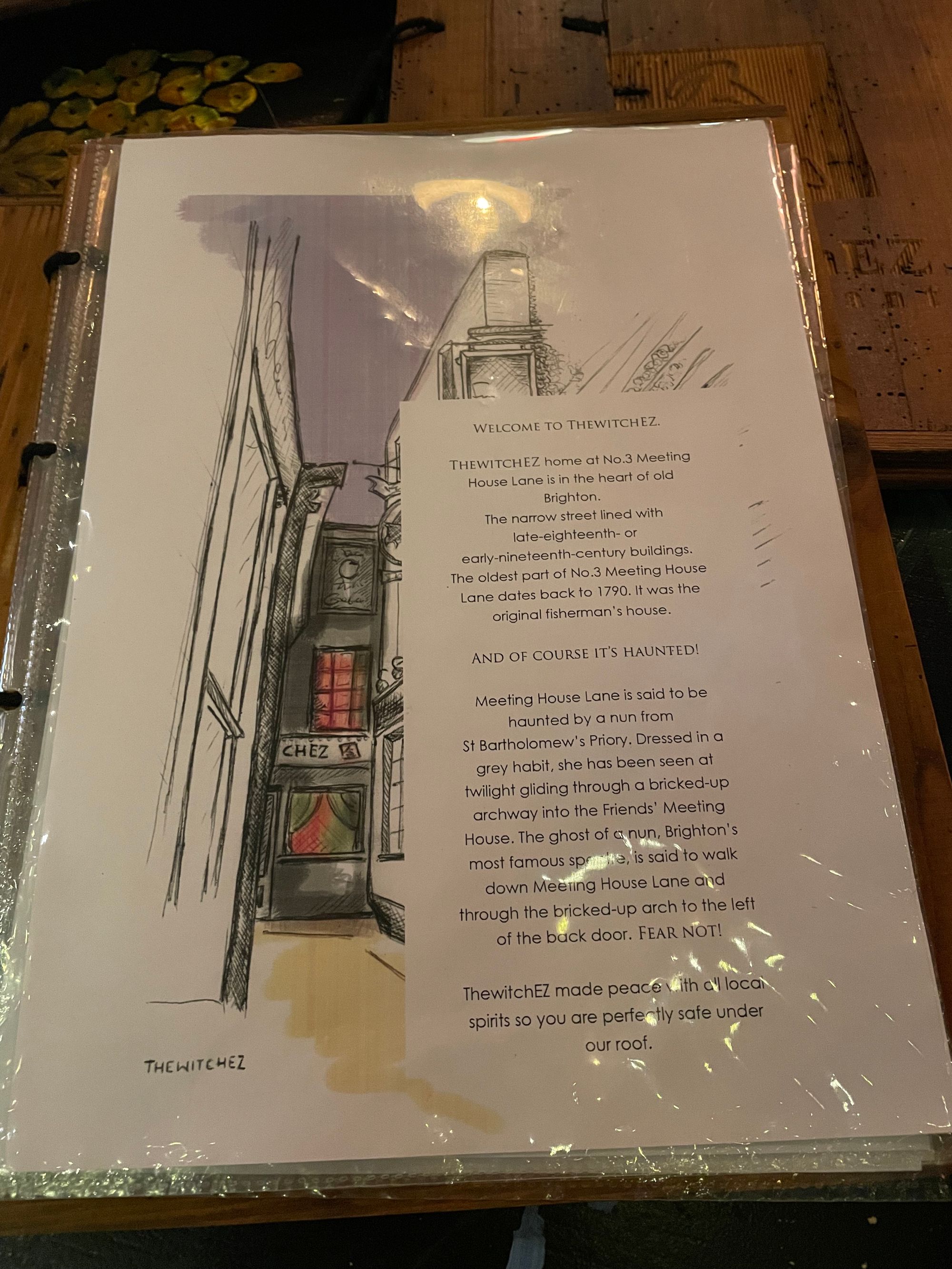 I sampled a few eateries while I was in Brighton, but there was one that particularly stood out for a number of reasons, and not just for the food! So, I decided to mention the Witchez separately. The restaurant is on the famous ‘Lanes ‘and it does a delicious selection of European food. It is a quirky place that is said to be haunted by a nun from St Bartholomew Priory. The spirit is said to be a friendly spirit and so it’s quite safe to dine here. I did have a spiritual experience here that I still can’t quite believe, one was that the telephone lamp on my table rang three times, which I obviously thought I had imagined at first, but I definitely didn’t, and the second was that my left shoe was undone when I came to leave. I loved my experience here, as the food, staff, and ambiance was amazing!
