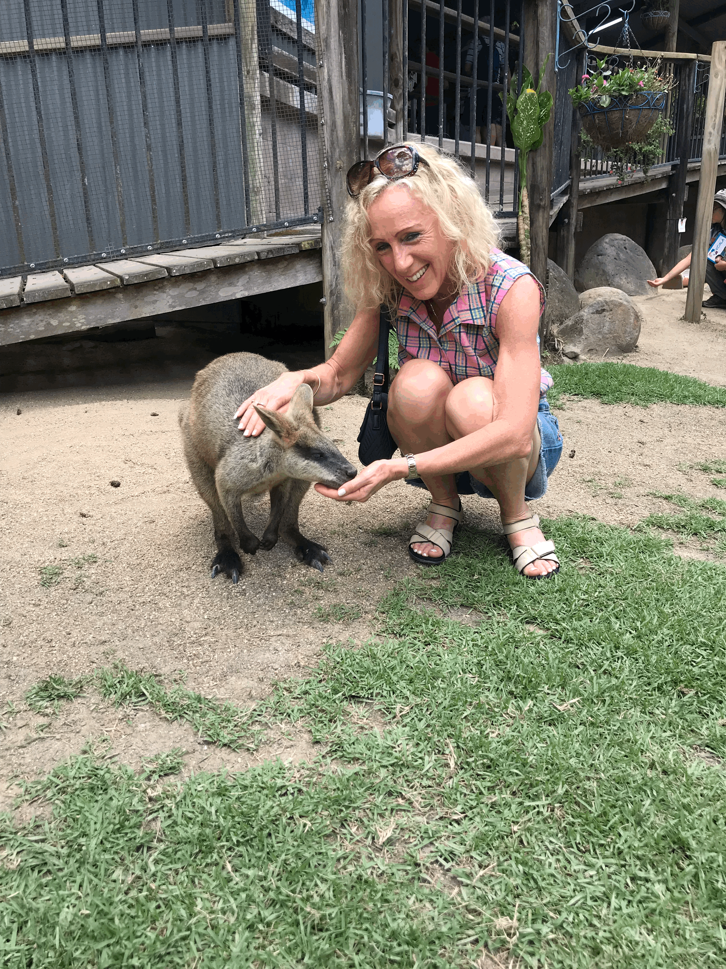 As well, as shopping, eating, and drinking, Kuranda is a great place to experience nature. You can discover beautiful butterflies, exotic birds, reptiles, and take some walks through the rainforest to the Barron Falls. My favourite part of this trip, however, had to be the Koala Gardens where you could see all Australia’s most famous animals, including koalas, wallabies, and wombats. You can cuddle a Koala here, too, which I just had to do! Most of the Koalas at the centre are rescue animals. You can also hand-feed wallabies and kangaroos. I did try to get a “selfie” with a wallaby, but he wouldn’t face the camera properly. This part of the trip was such a magical experience for me.