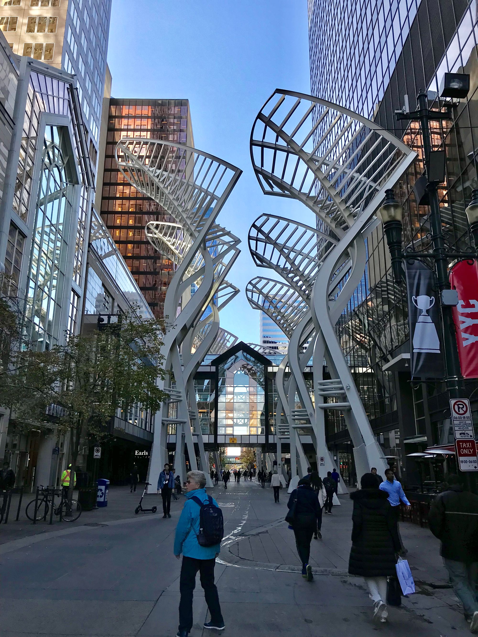 Our final destination was Calgary for one night before we drove to the airport to catch our flight home. We didn’t have much time here, so we really only managed to have a stroll around the centre and grab something to eat and drink. We noticed a stark change in the landscape as we reached Calgary, as it is so much flatter with the absence of the mountain ranges. We noticed a number of scooters parked in the centre that could obviously be picked up in one area and dropped off at another. The centre was modern, clean-looking, and quite impressive in its architecture. We were hoping to go up Calgary Observation Tower, but it was unfortunately closed due to some maintenance being performed on it.