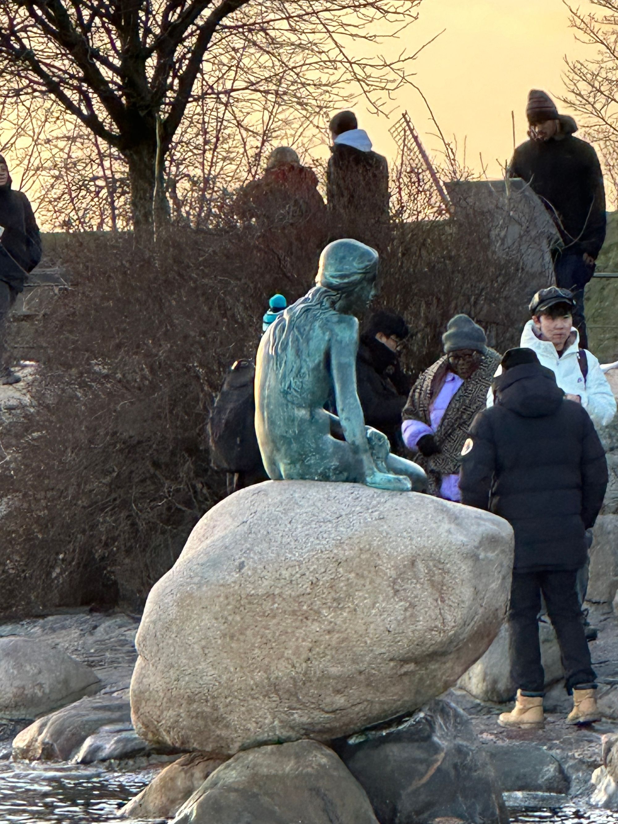 We walked up and down the banks of the waterways and into the harbour area where good views of the Opera House and an old battleship could be seen. The whole area was quite busy and had a great Christmas vibe. There were many little huts selling Christmas gifts, food, and drink, including crispy churrus with a choice of toppings, and Glogg, the Danish version of mulled wine – all simply delicious! We had also booked a boat trip online before venturing out, which was good value at £15 per person and lasted for an hour. Unfortunately, we couldn’t go down all the canals because the water level was too high for the boat to get under the bridges, so we were taken out into the harbour instead. This was still enjoyable, and we saw a number of landmarks, including Amalienborg, the Opera House, and the famous Little Mermaid that sits comfortably on a rock at Langelinie Pier. The bronze sculpture is 1.25 metres tall and was installed in 1913 by sculptor Edvard Eriksen. The sculpture is based on a character from a ballet performance that was shown at the Royal Danish Theatre in Copenhagen. Sadly, the Mermaid has been vandalised on several occasions and has had to be repaired.