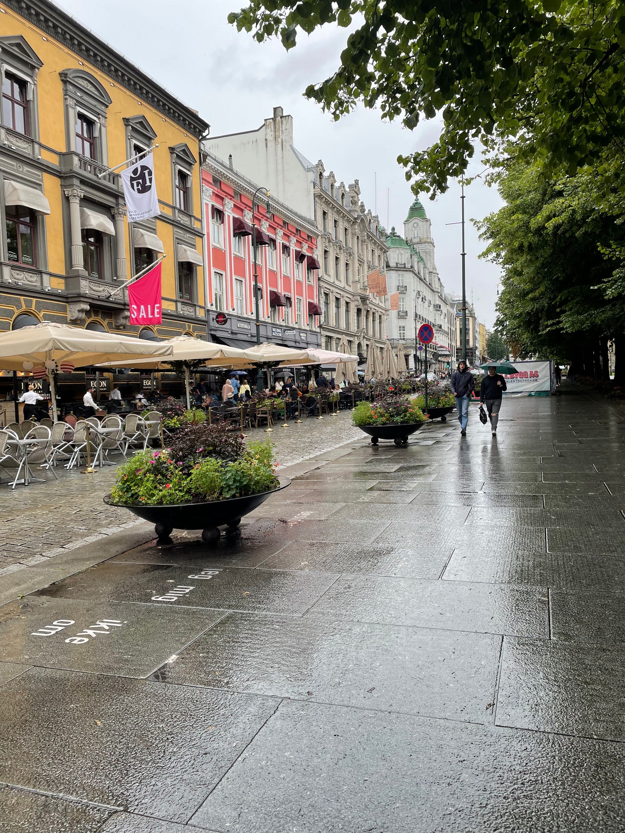 My first day in Oslo was unfortunately wet all day! So, I decided to have a restful morning after all the hassle from the previous night, and in the afternoon I ventured out and took a nice walk through the Palace Park, which was just up the road from the hotel, and then I had a short wander around the city. The impressive Royal Palace is located inside Palace Park at the end of Karl Johans Gate behind the Palace Square – the Parliament Building and the National Theatre are in Karl Johan Street, along with the station and an array of shops and cafes. The Palace was built in the early 19th century and is now the official residence of the Norwegian monarch. I was also lucky enough to see the changing of the guards at the front of the Palace.