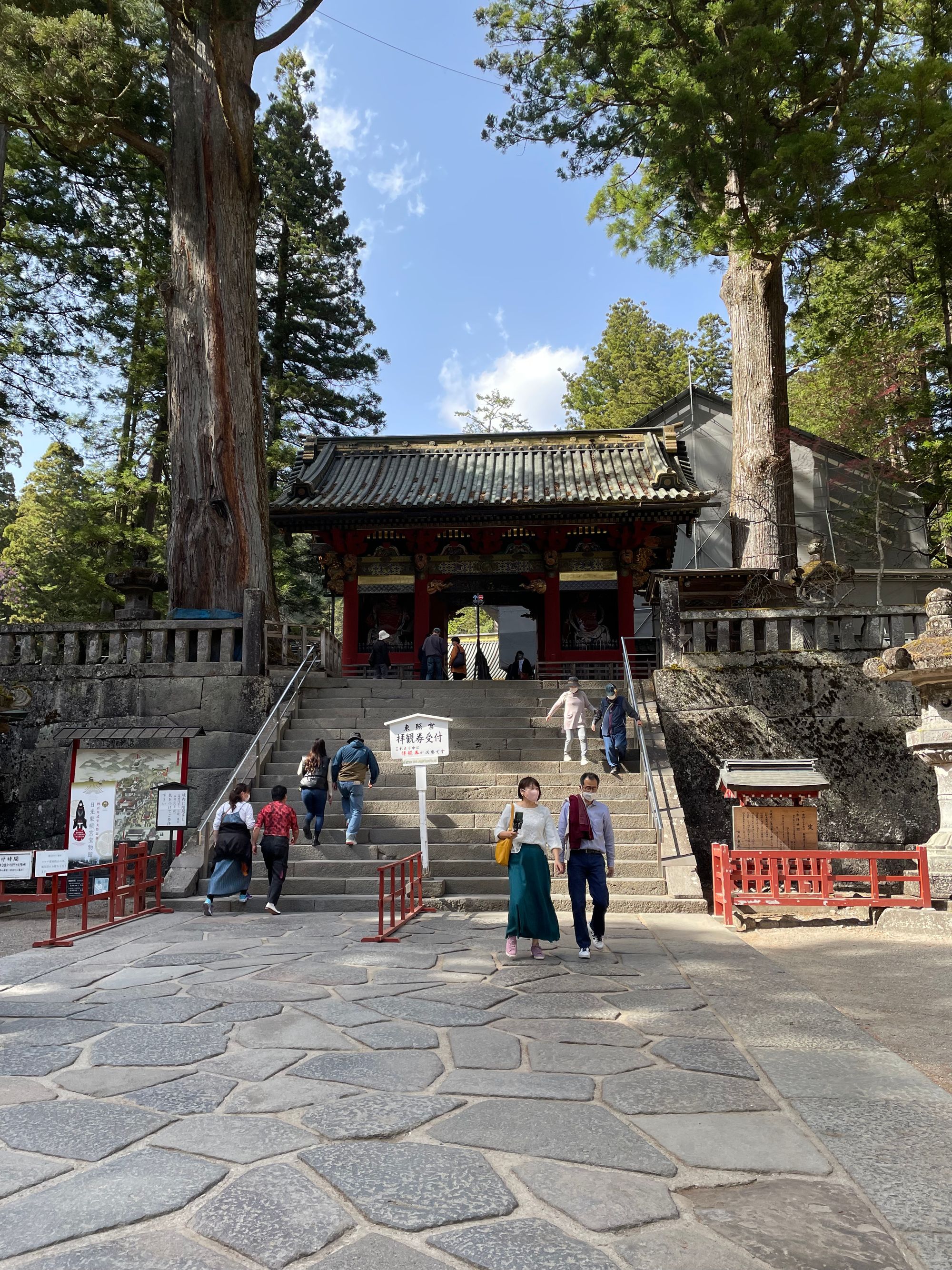 The hustle and bustle of Tokyo ended up being left behind for most of today, as I took an approximately 2-hour trip on the JR and bullet train to Nikko in the mountains. Nikko is a small town and World Heritage Site in the Japanese region of Tochigi. The town is at the entrance to the Nikko National Park, and is a breathtaking area with lakes, mountains, waterfalls, hot springs, and numerous hiking trails. The park is most famous for the lavishly decorated shrine of Toshogu.