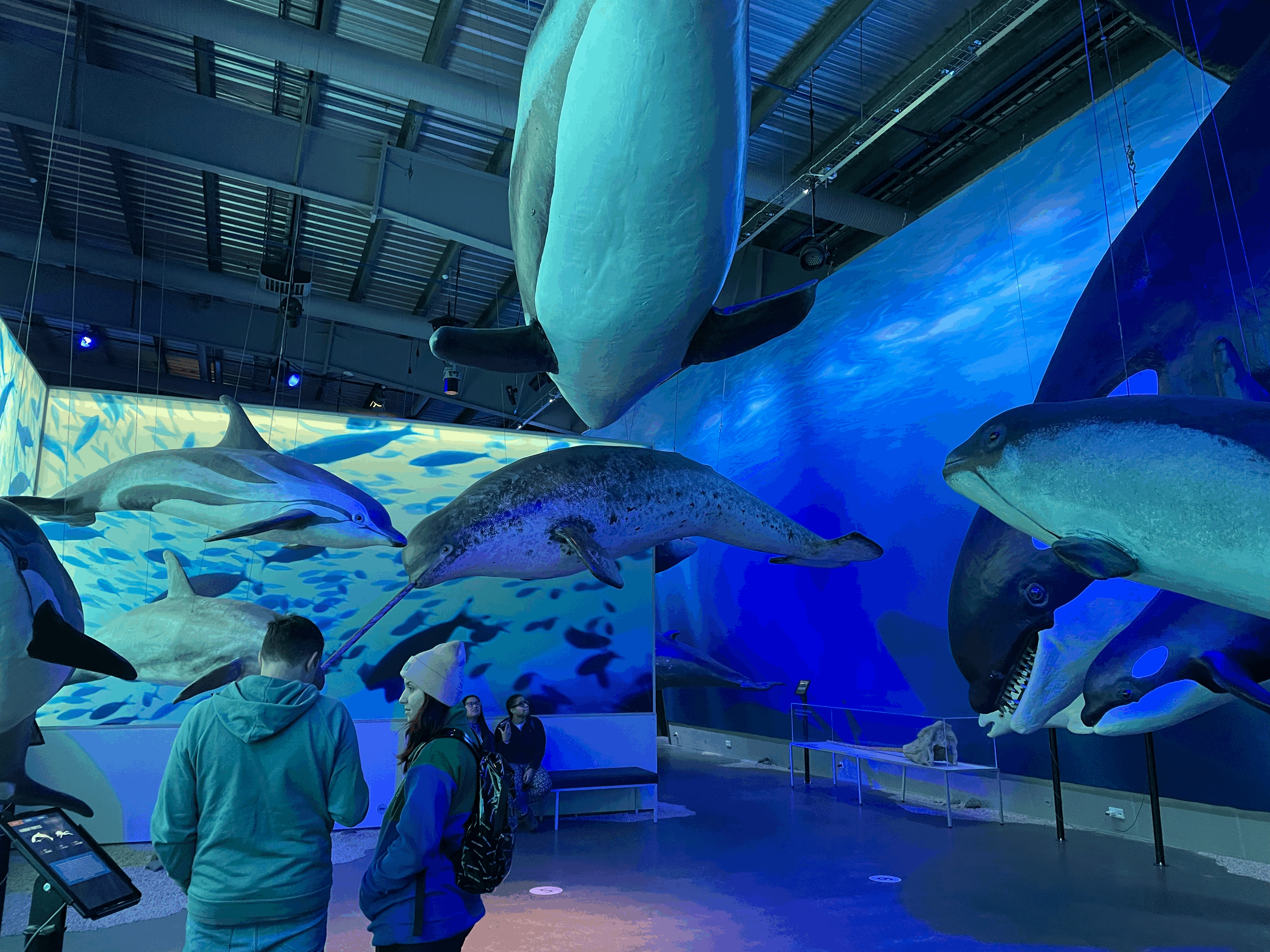 After walking for a while, I came across one of Reykjavik’s main attractions: the whale museum – Whales of Iceland. This is one of the largest museums dedicated to whales in Europe, and possibly beyond. It offers excellent life-sized models of whales, as well as interactive displays, a café, and a souvenir shop that sells every time of whale in plush form! The museum itself isn’t huge, but you can spend as long as you like there. They do guided tours throughout the day, but I decided to purchase the self-guided tour that can be downloaded to your phone and uses the Wi-Fi. I found the information really interesting, and I learnt things about whales that I never knew before: apparently, the hippopotamus is the whale’s closest cousin and fossil records show that whales are closely related. Early whales had already adapted themselves to life on the coast and gradually over time they lost their limbs and became the marine mammals we know today. My tour finished off with a short whale documentary in the cinema viewing area and a hot chocolate in the café!