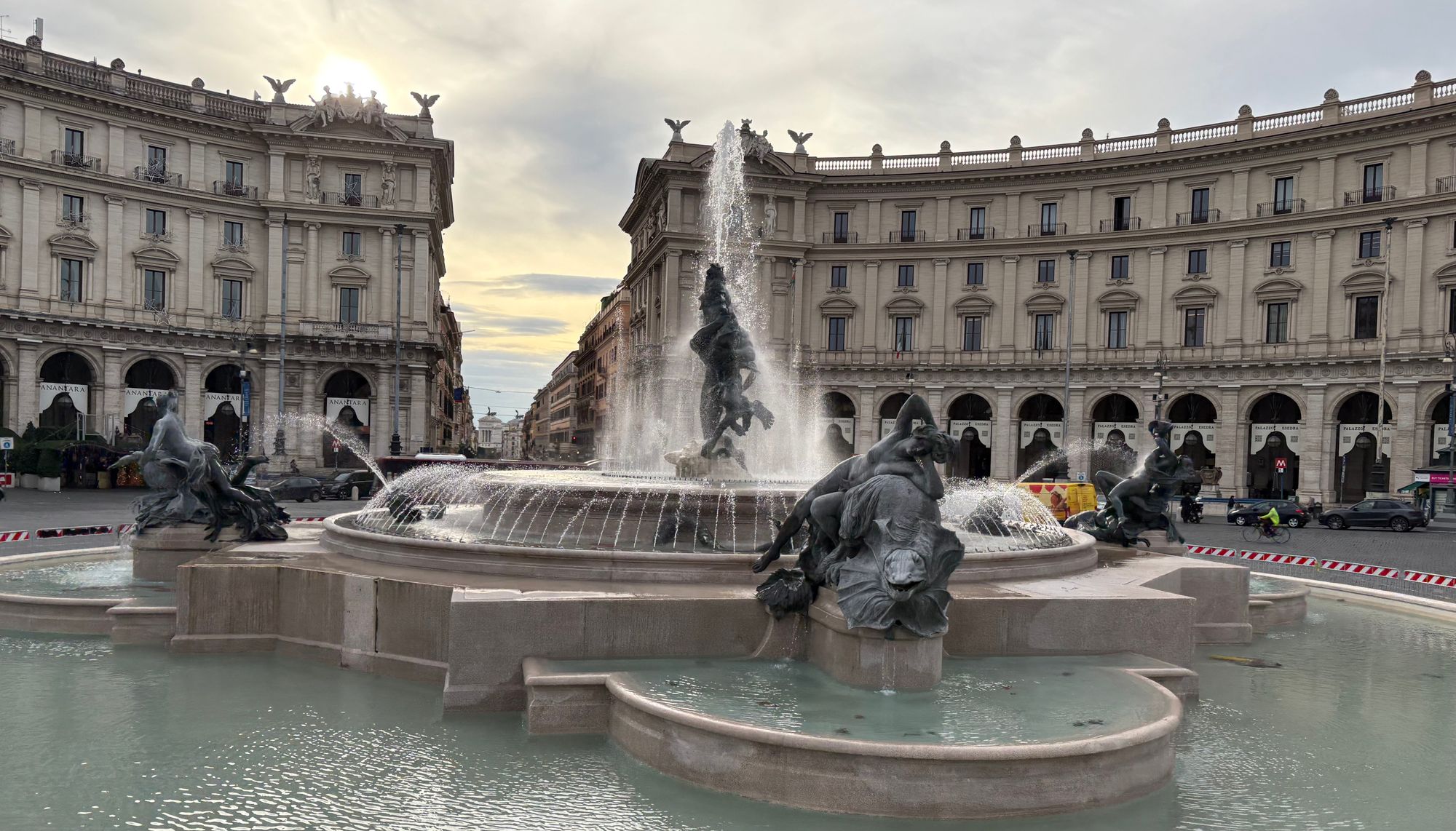 Today was a much brighter day with sun and it was warmer than the previous day. The brighter weather made for a perfect visit to the Trevi Fountain after breakfast which was only a few minutes’ walk from my hotel. Until I arrived at the fountain, I hadn’t realised how small the area was that the fountain is sited in. It is in the Piazza di Trevi which is at the junction of three roads (tre vie) which is where the fountain and district gets its name from. The pedestrianised plaza is very quaint, but I don’t imagine there is much room to move around here on a packed day in the summer. From the beginning of February 2026, there is going to be a €2 pp charge for the fountain. Rome has many fountains, but the Trevi is the largest Baroque fountain in Rome. It features the god, Oceanus on a shell chariot, surrounded by tritons and horses that are supposed to represent the mood of the sea. The fountain was commissioned by Pope Clement XII to replace a smaller fountain and was completed in 1762 where it now links modern day Rome to its classical past.