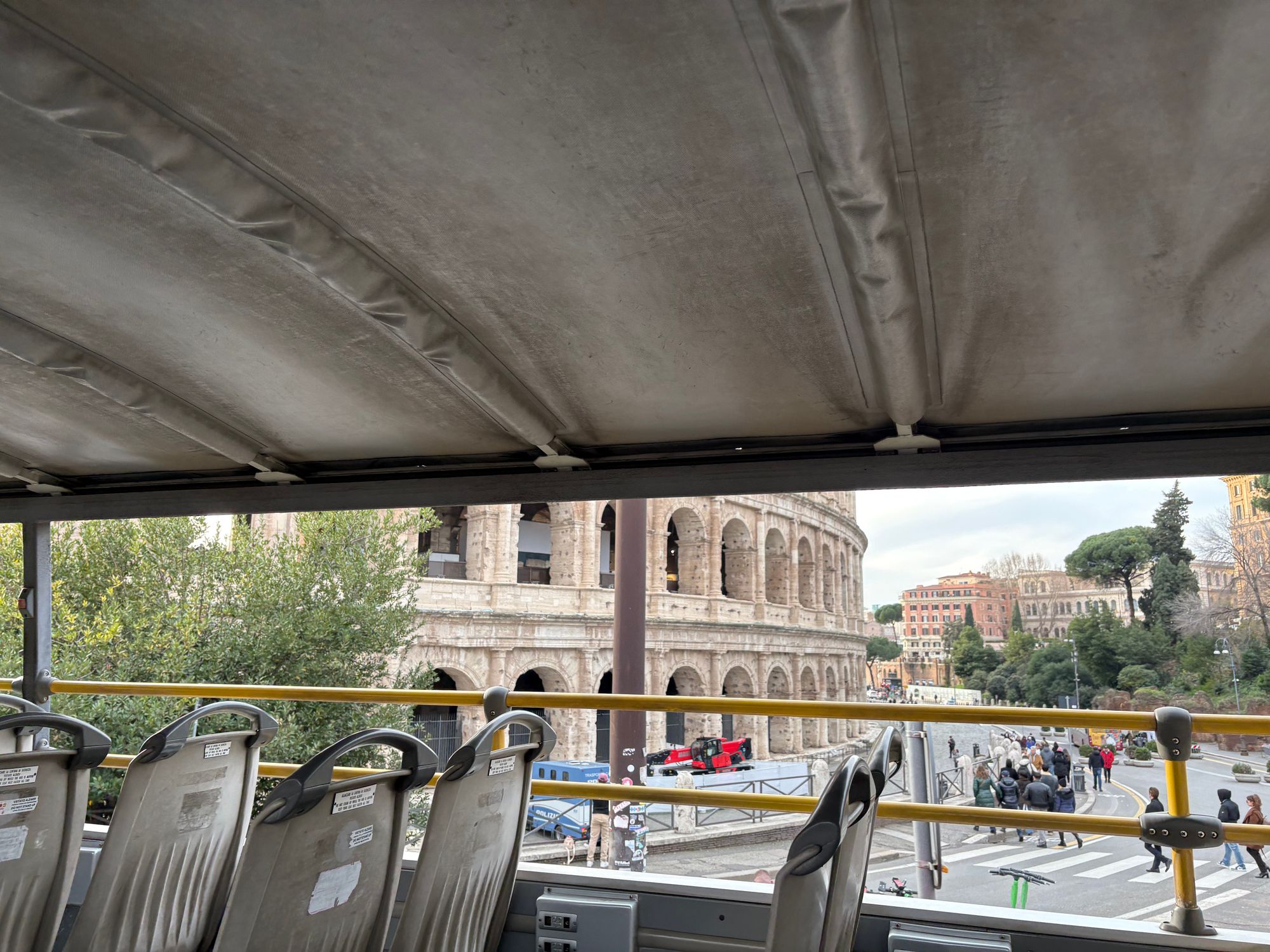 After refreshments, it was time to take a bus tour on one of the hop-on hop-off buses. They, of course, have these in many of the big cities around the world but I think I have only ever ridden on one in Budapest and London before this. They are a variety of different ones in Rome and they are different colours. I thought it would be nice to do a full circuit of the city highlights as it only takes 1.5 hours at a price of €19. Even though Rome is quite a walkable city, the open top bus is a great way to see all the sights from a more elevated position, and the tour offers earphones so that you can listen to a commentary. I didn’t prebook this activity, but I imagine in high season it would be more difficult to do this at the last minute. It was a bit cold at the top of the bus in January, too, but would obviously be a lot warmer during the summer months. It’s quite a good idea to do something like this early on in your holiday so that you can see what you want to look more at and then you have the option to hop off the bus and get back on another bus when you are ready.