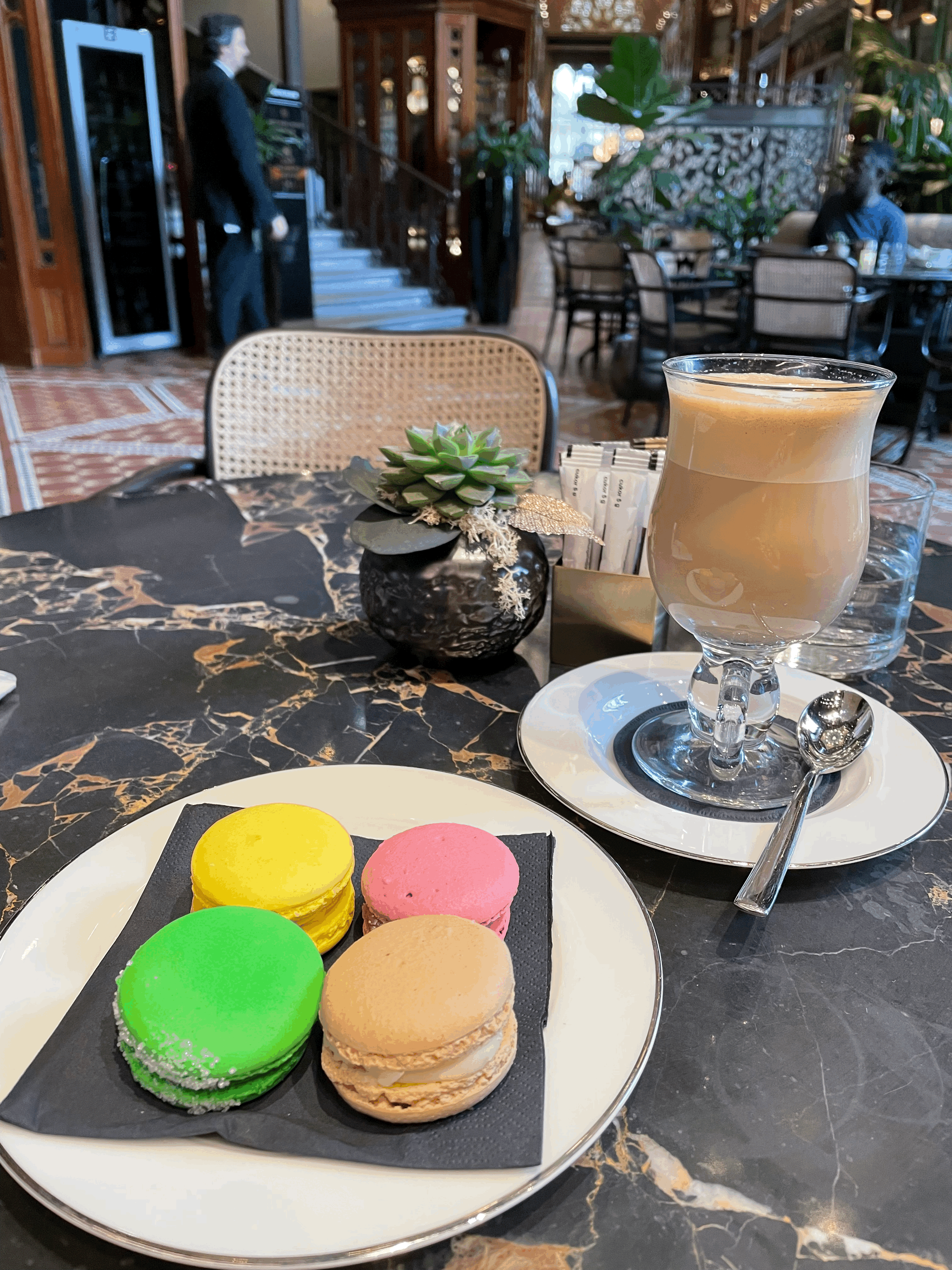 My last trip, before it was sadly time to leave this beautiful city and trek back to the airport, was the amazing Parisi Parish café, which is part of the Parisi Udvar hotel and was one of the few lucky buildings to escape damage during WW II. In 1906, this hotel used to be Budapest’s central savings bank, and the one-of-a-kind experience incorporates elements from Gothic, Moorish and Arabic designs - some aspects of the hotel’s designs were produced by the same people who designed Harrods in London. The café is like stepping back in time and one can almost imagine someone like Poirot stepping in through the doors! The cakes are exquisite here and the experience alone was worth the little extra cost.
