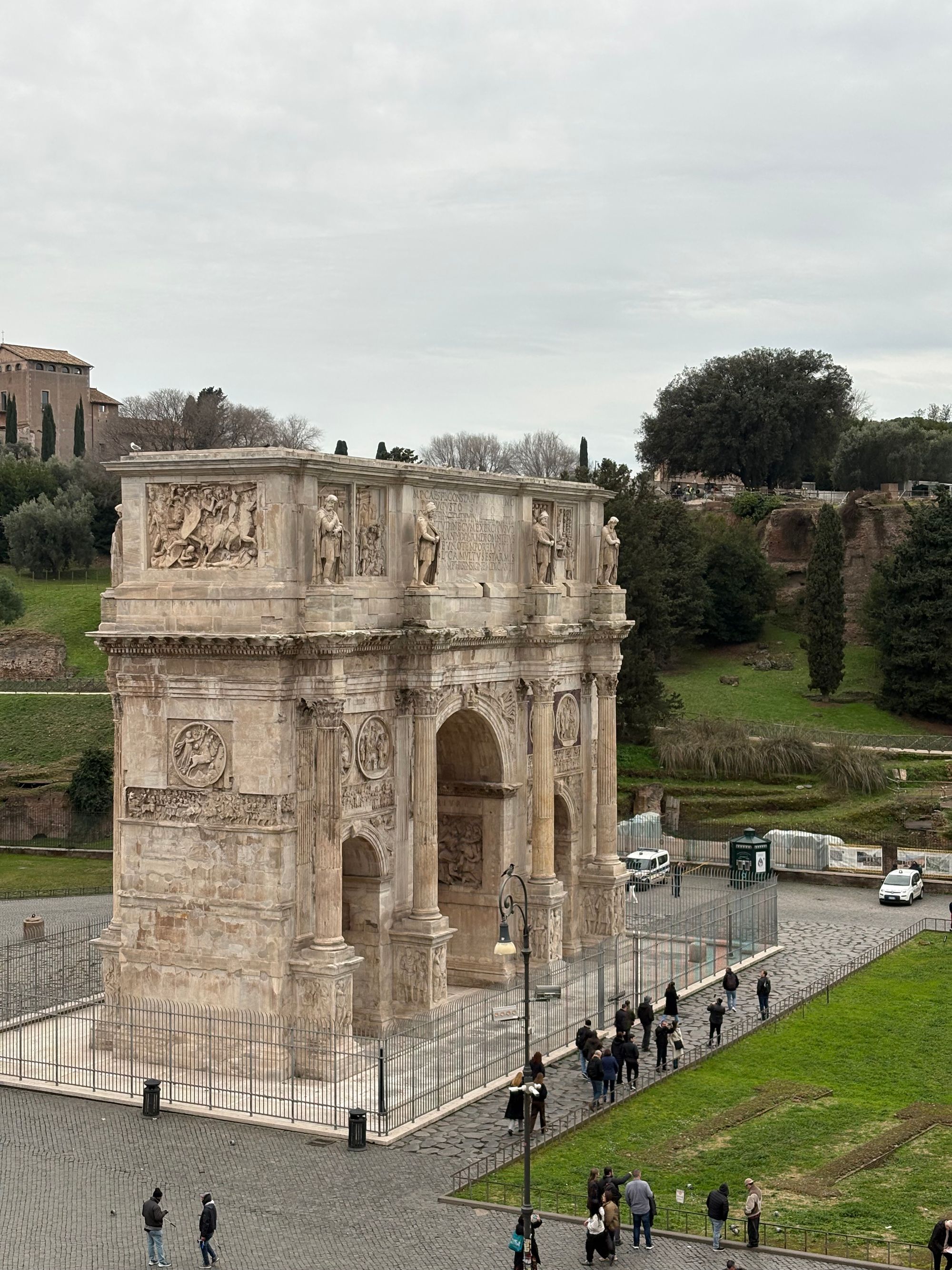 Today was my last full day in Rome, before flying back home the following day, and was overcast and a lot colder than the previous days. I had prebooked a tour of the Colosseum for today that included Palatine Hill and the Forum Arena. The tour lasted for about 2.5 hours and included a head set so that you could hear the tour guide more clearly – I found these headphones to be a lot better than the ones at the Vatican. One important thing to remember about this tour is that passports or ID cards are required for entry, and, like the Vatican tour, quite a lot of walking and standing is involved; so, make sure that you come prepared with comfortable shoes, and warm clothing if you come in the winter months. There are also quite a lot of ticket check areas before and during the tour – I was told that this was to try and prevent the petty crime around the Colosseum area where people had had items, such as bags, stolen. Most places within Rome can easily be reached within about half an hour of walking, unless you have any mobility issues, of course. There are also quite a lot of cobbled path areas to engineer at times.