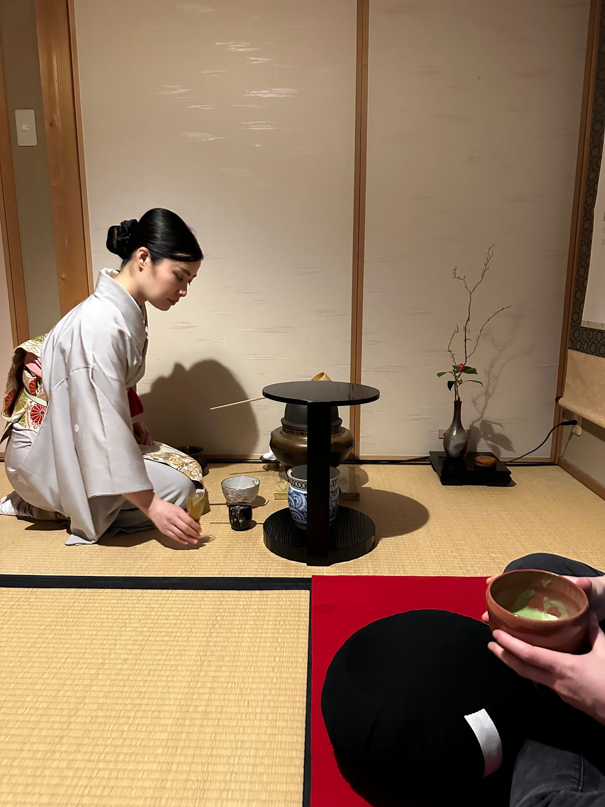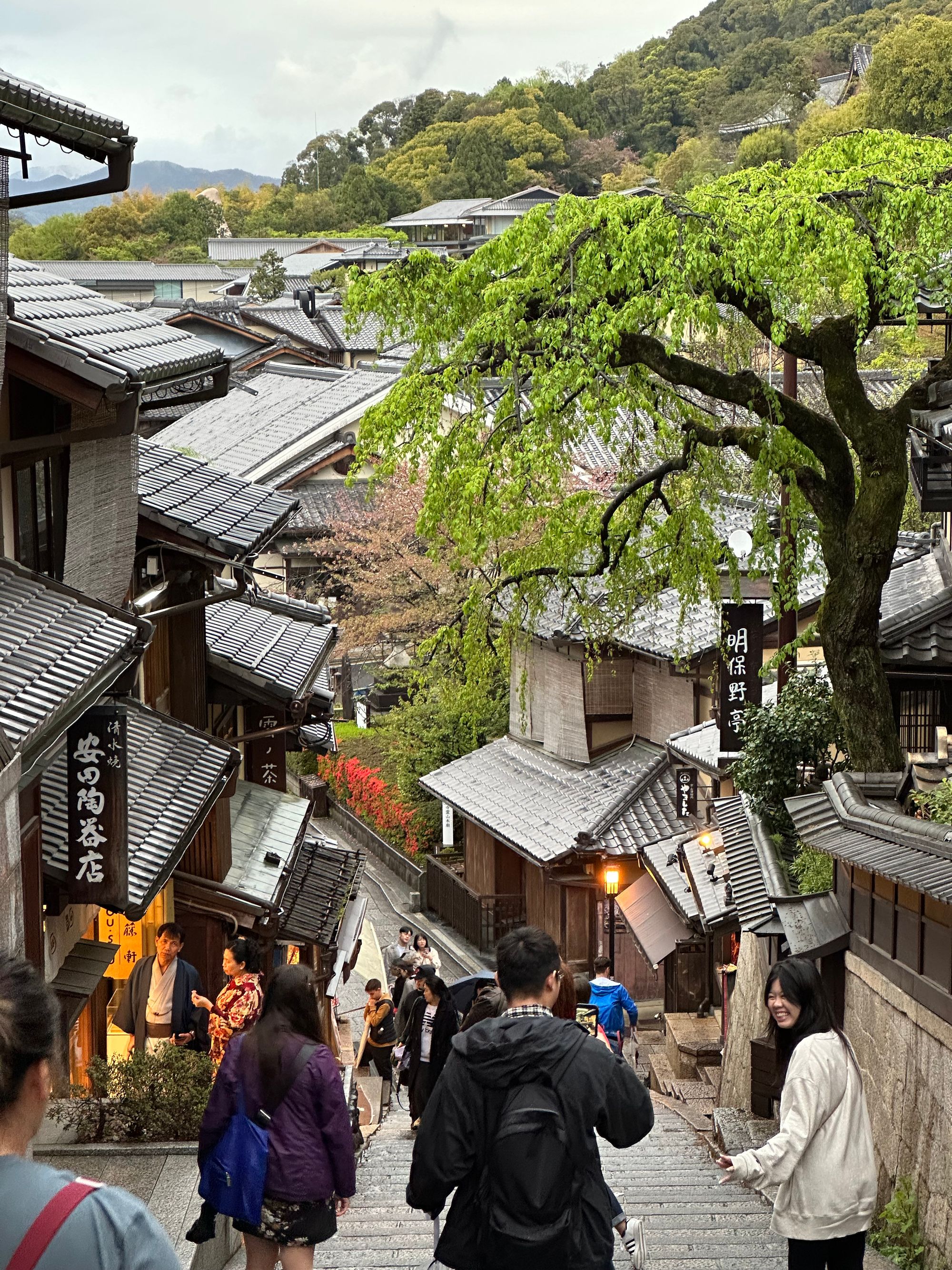 It was soon time to set off again on another adventure: the traditional tea ceremony which was at the Camellia Flower Teahouse in Ninenzaka. Ninenzaka, along with Sannenzaka are two sloping streets that lead to the Kiyomizudera Temple. These historical streets are lined with quaint shops and cafes, offering traditional Japanese crafts and cuisine; however, there is also a lovely little Starbucks nestled amongst them. This is a truly picturesque area of Kyoto with the mountains firmly in the background. I had a little wander around this area and up to the temple after the tea ceremony.