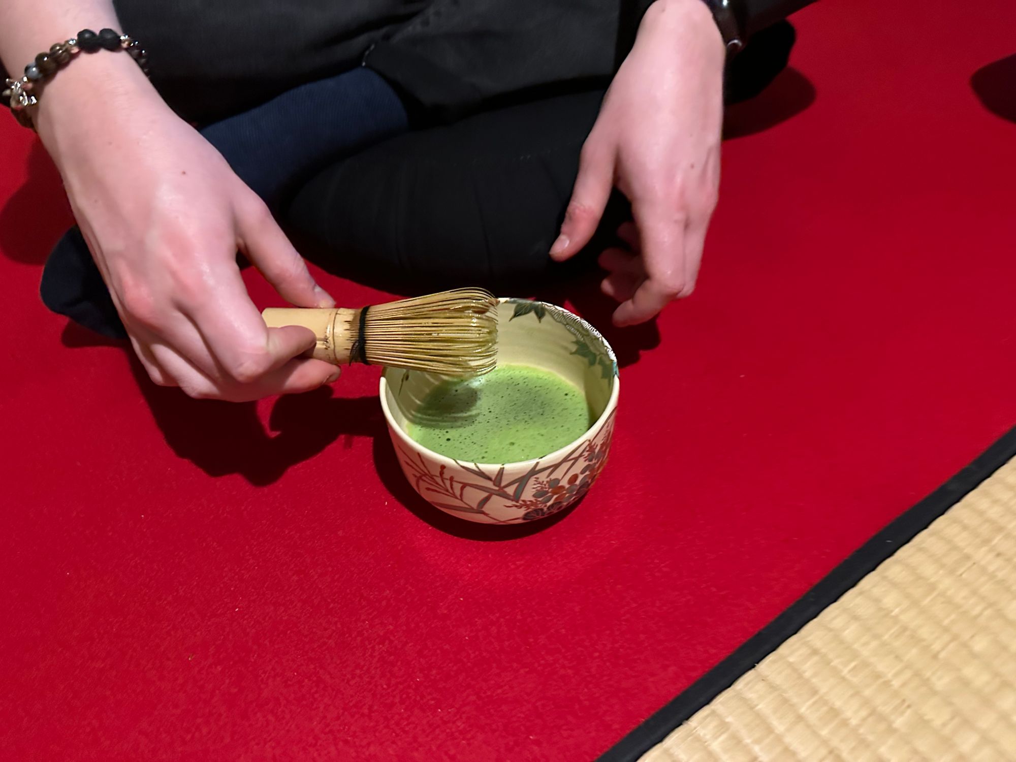 The tea ceremony was really authentic, and the process was explained to me at each stage. I learnt about the history and philosophy of the tea ceremony and its relationship with Zen Buddhism. Tea ceremonies are traditionally a way of sharing hospitality with your host in a relaxing environment that is far away from the stresses and strains of everyday life. This whole experience lasted for about 45 minutes and involved mixing and tasting matcha green tea, and beforehand tasting the traditional sweet treat that is supposed to take away any bitterness from the tea – these sweets, Wagashi, were made of a sweet bean paste and covered in bamboo leaves. They were quite big and tasted salty on the outside and then sweet on the inside. I didn’t really like them and only had a couple of bites. The tea, on the other hand, was quite refreshing, and I came to readily enjoy matcha tea during my Japan trip.