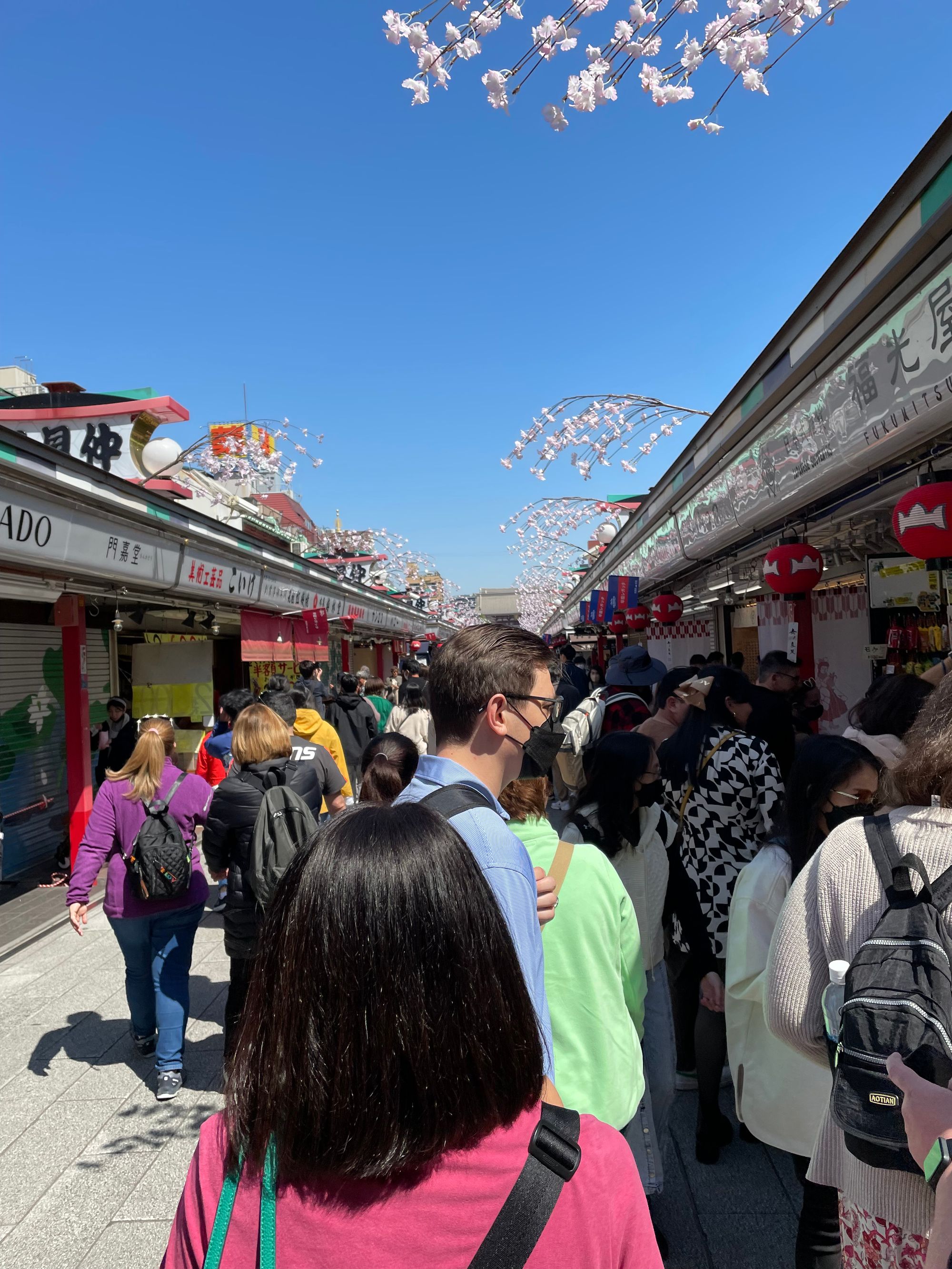 My next stop was Sensoji Temple in the Asakusa district that was built for the Goddess of Kannon. This temple is Tokyo’s oldest temple and also the most popular and colourful one. There is a legend that says two brothers fished a statue of Kannon, the Goddess of Mercy, out of the Sumeda River. They returned the statue back to the river, but it always returned to them. Leading up to the temple is a long row of lantern lined shops that stretches over 200 metres, called Nakamise. These shops typically sell all manner of souvenirs from folding fans to local snacks. Several events are also held in the Temple area throughout the year. We had quite a fun time here, too, as you can get a written fortune from a wooden drawer and if you don’t like it, you can tie it to one of the omikuji trees in the hope that leaving a bad fortune behind will lead to a better one! We lit some incense sticks, too, and made a wish as we threw coins into the water. I also bought a little lucky bell charm here for 100 Yen.