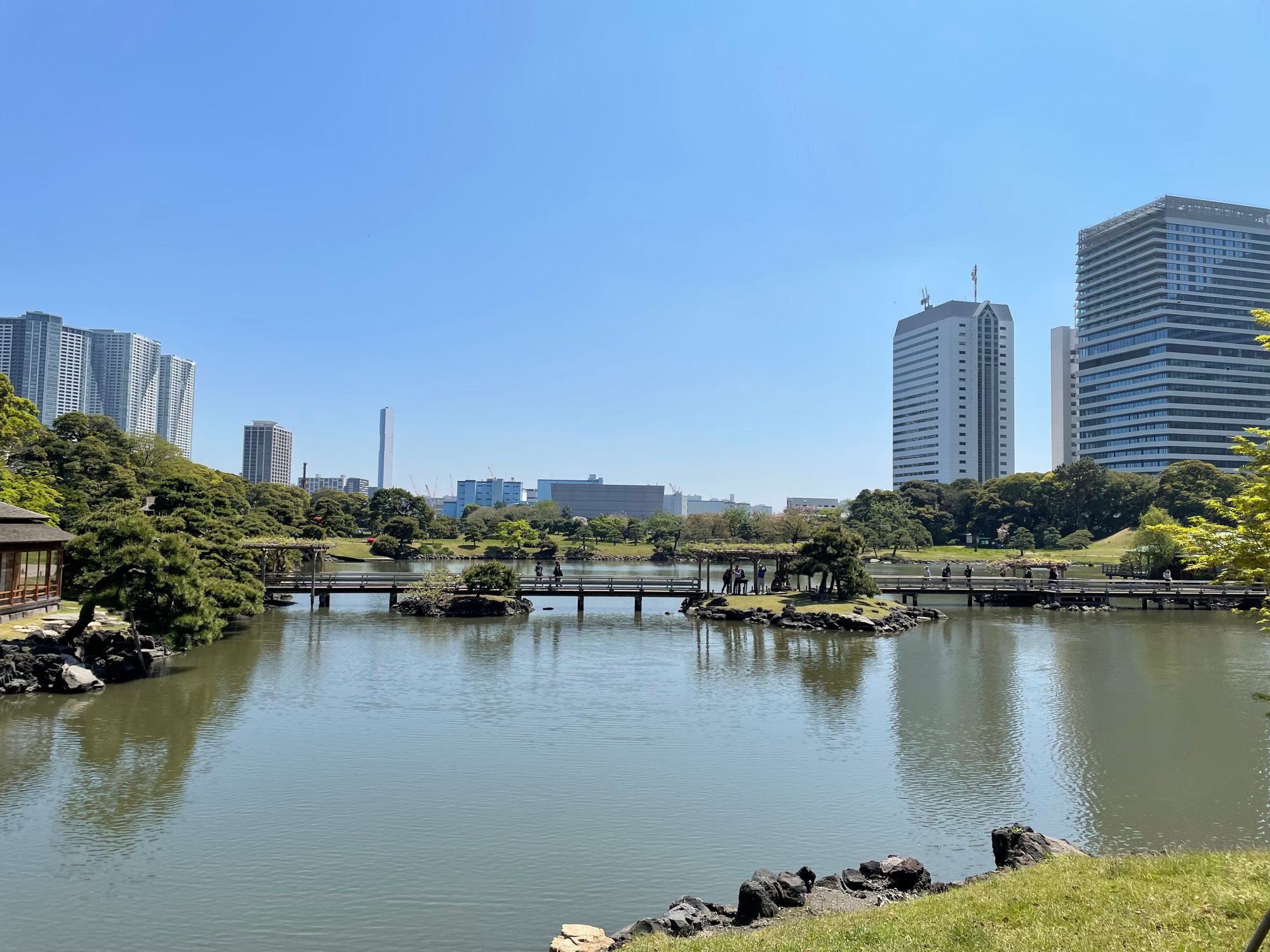 Akie and I set off to Hamarikyuteien gardens in downtown Tokyo which was only a short distance away on the subway. This green space is a little like Central Park in New York with its glistening backdrop of high-rise buildings. These gardens used to be kept for Imperial use only and didn’t open to the public until 1946. There is a Sumida River Line waterbus that runs to the gardens, but unfortunately it was fully booked so we were unable to get a trip on that.
