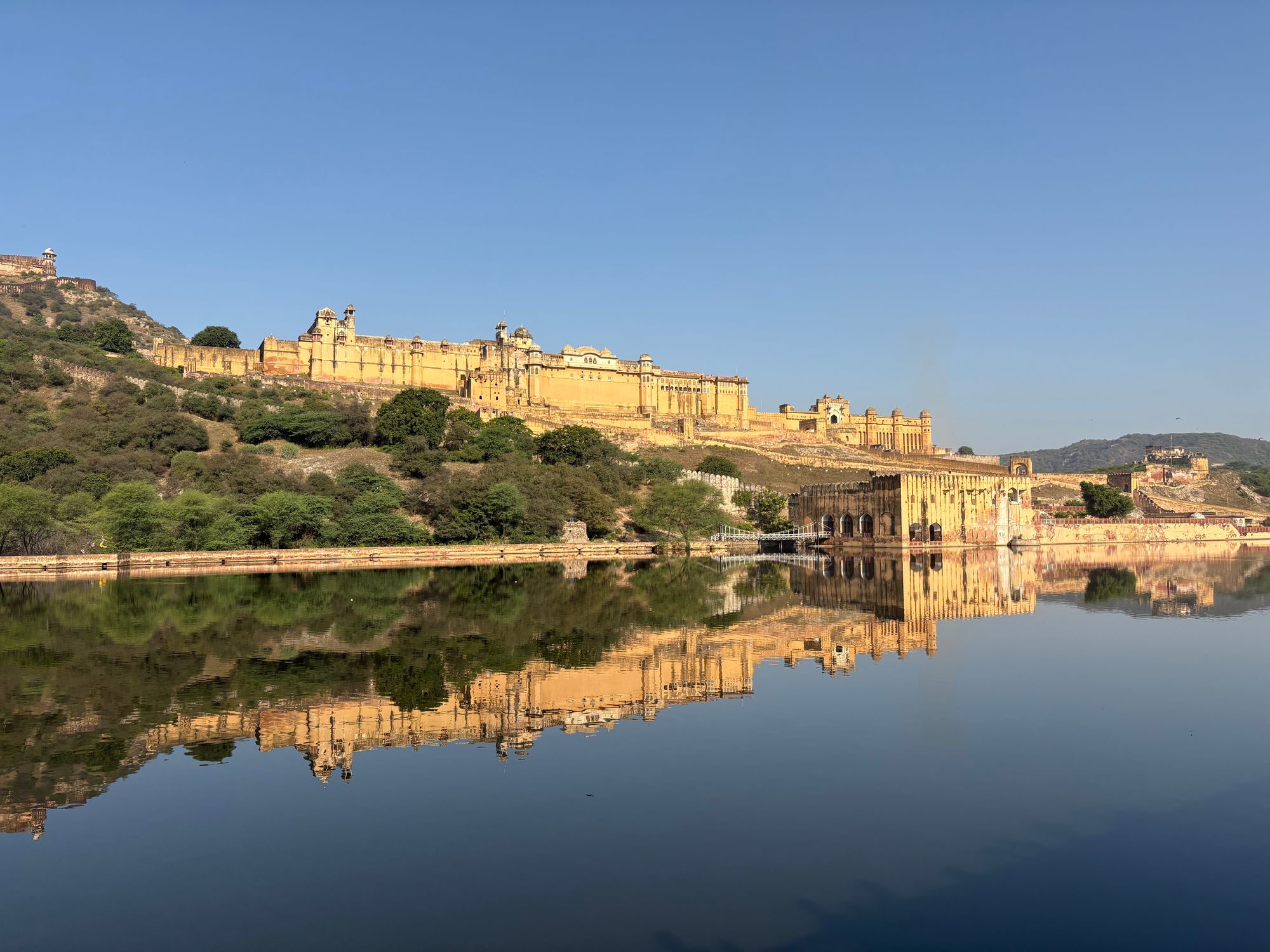Our next visit was to see the beautiful Amber Fort which was built in the 16th century by Raja Man Singh from yellow and pink sandstone, and white marble. We had to park up in a bus park and then take jeeps up to the entrance of the fort, which was good fun and the views from the top were amazing, especially looking out across the water! The pedlars were out in force here, though, and they were very persistent. You have to learn to just shake your head and politely say, ‘no thank you!’ if you don’t want to buy anything.