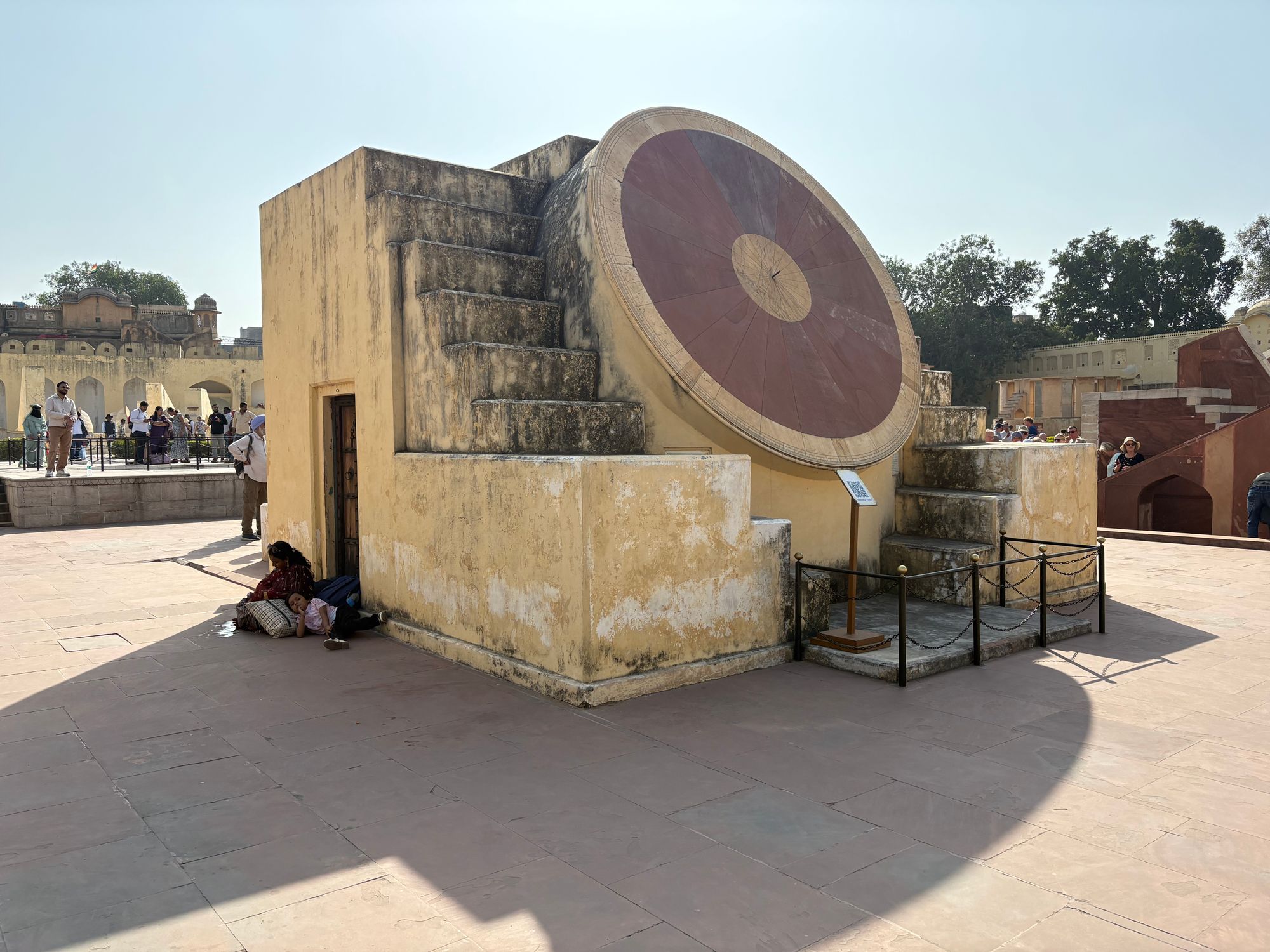 Our final visit of the day was to the 18-century Jantar Mantar Observatory, which is the largest stone and marble astronomical observatory in the world. It has 17 large instruments, and many of them are still in good working order. This was a fascinating place with such beautiful craftsmanship and is in a great setting. We spent some time wandering around here looking for our zodiac signs, as each sundial is designed to represent one of the 12 zodiac signs. Royal astrologers used the instruments to study the sun and chart horoscopes.