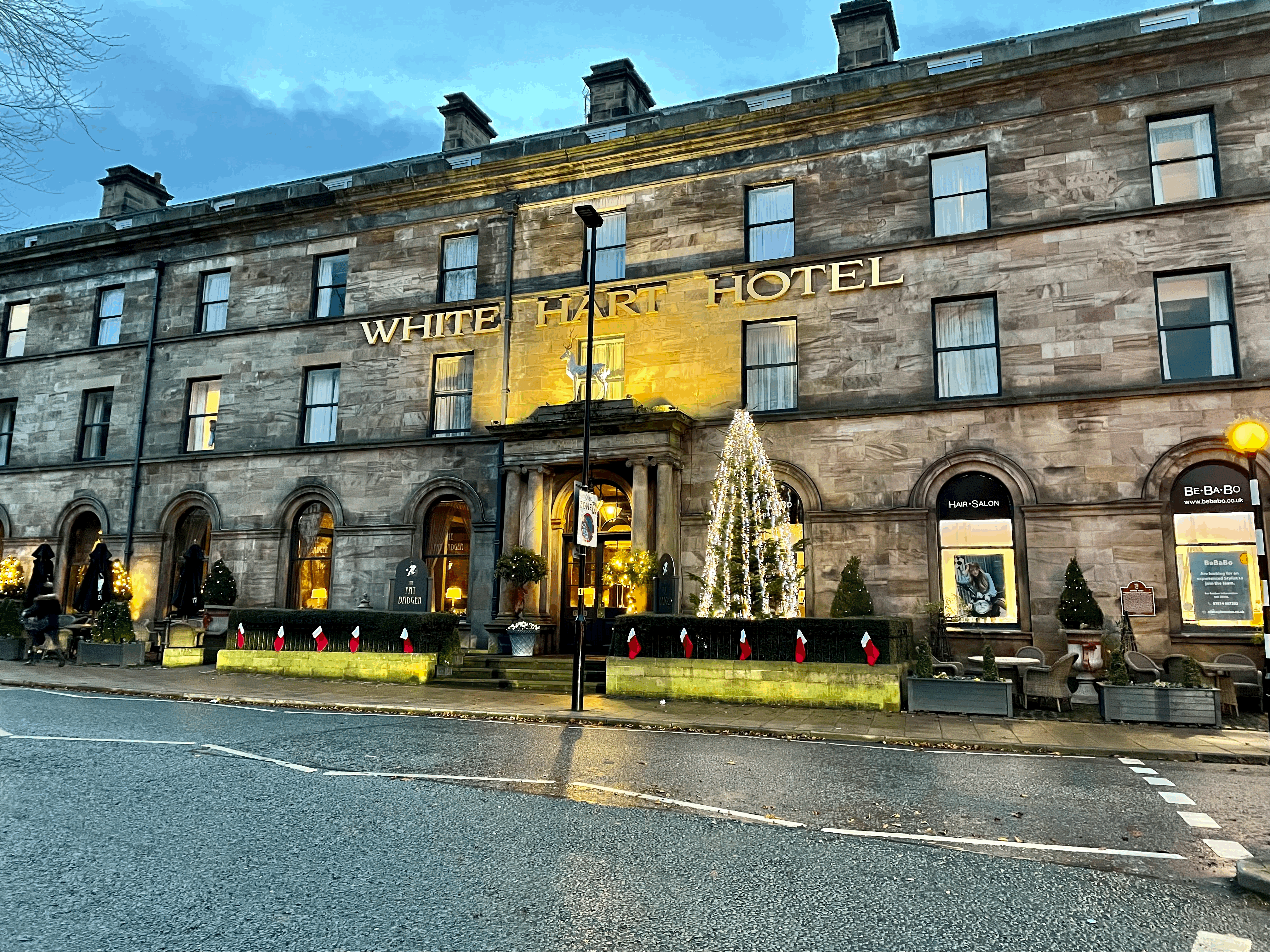 I set off for Harrogate on the train, which wasn’t a bad journey at all for me, as it only involved a couple of changes at Manchester and Leeds. I stayed at the lovely White Hart Hotel that was literally a 10-minute walk from Harrogate train station. The hotel is perfectly located in the stylish Montpellier Quarter and has lots of character and lovely rooms; as well as the Fat Badger restaurant and pub that serves delicious food. I arrived just in time for all the Christmas decorations going up in the hotel and the town centre.