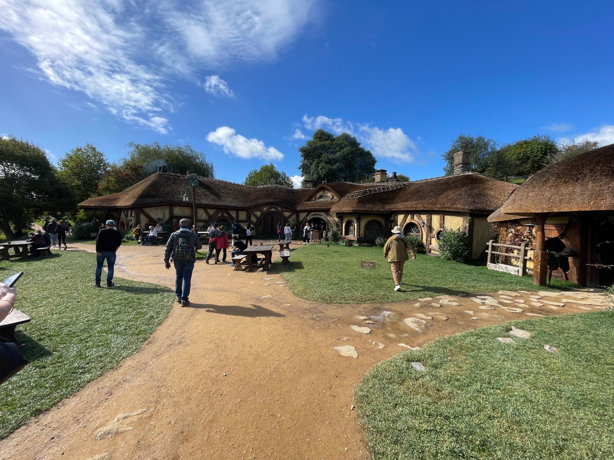 It was still dark when I left, and it didn’t start to get light for a little while. The drive in the minibus headed out of Auckland city and to the Waikato countryside, which is the most extensive farming area in the world. We later arrived at the movie set after winding round country roads and up and down hills – everywhere looked so green. There was a short bus ride to do once arriving at the 12-acre movie set that took you to the guided 1.5-hour walk. The set is amazing with its 44 Hobbit holes scattered around, and the view across the shire towards the Hobbiton pub is stunning – that was after the torrential downpour we had on arrival that thankfully blew over to leave a stunning sunny day! You can literally take as many photos as you wish – and believe me, I took LOTS! The added enjoyment of this trip is that you can now go inside one of the Hobbit houses that has been completely kitted out and is truly amazing. I was lucky to go when I did, as it only opened its doors at the end of 2023 – so had I gone pre-covid, I would not have been able to experience this. The final part of the Hobbiton trip includes a free drink in the Green Dragon Inn, and of course you can buy food inside too, including a traditional homemade pie that comes well recommended.