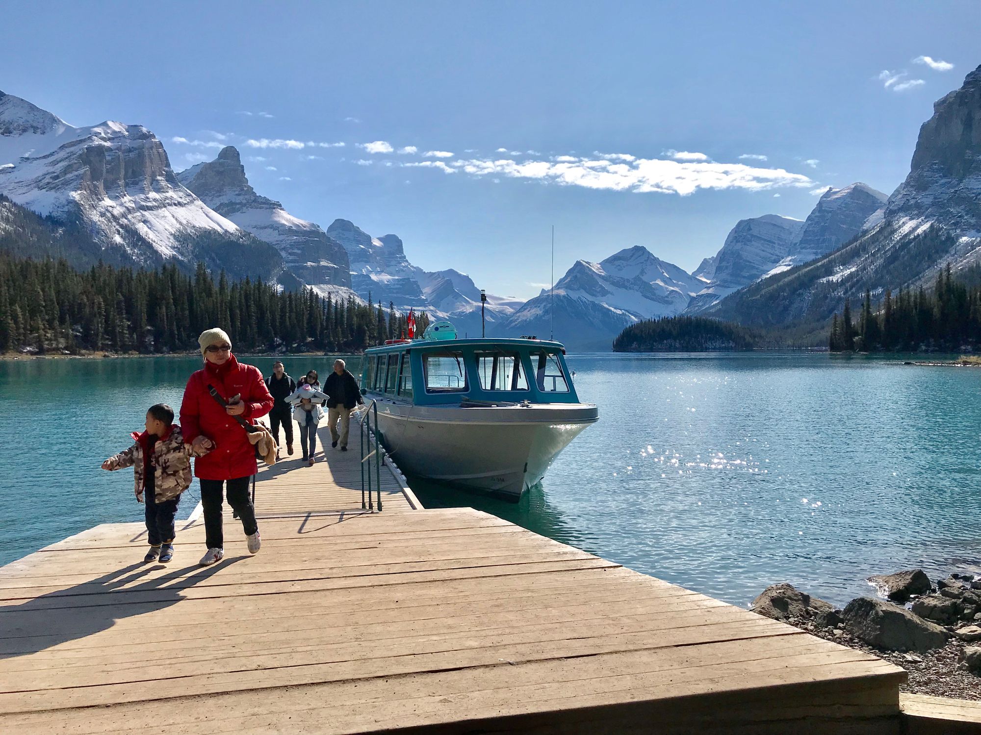 The weather was beautiful in Jasper, so we decided to book a last-minute cruise across Maligne Lake, which is the largest natural lake in the Canadian Rockies – apparently, the weather hadn’t been as perfect as the day we chose for most of the summer! This was a beautiful trip that lasted for about two hours, taking us right across the 22 km lake and back, and incorporating a stop off by the beautiful Spirit Island. Spirit Island is rumoured to get its name from a modern-day story of Romeo and Juliet, who apparently used the island for their clandestine meetings.
