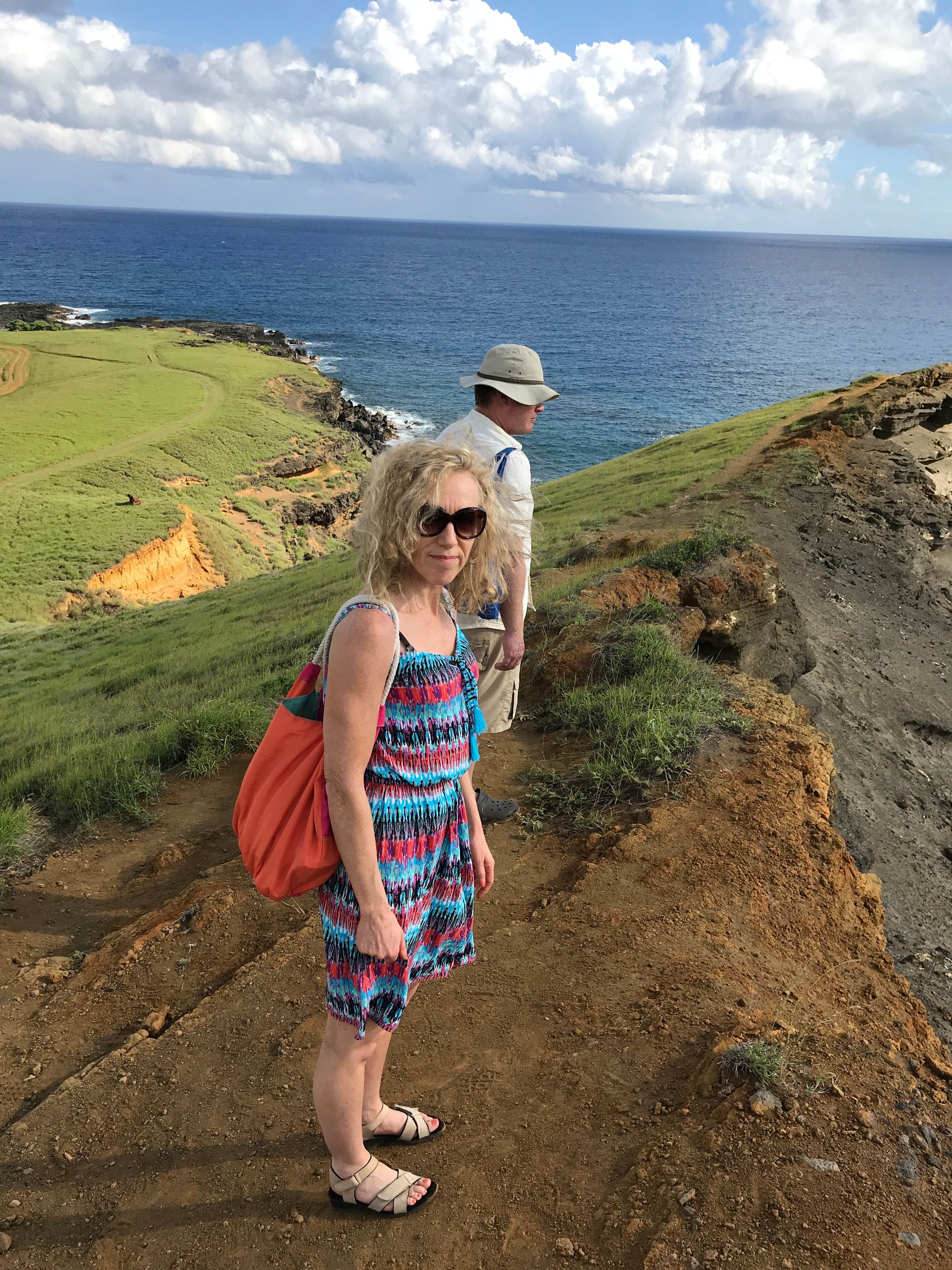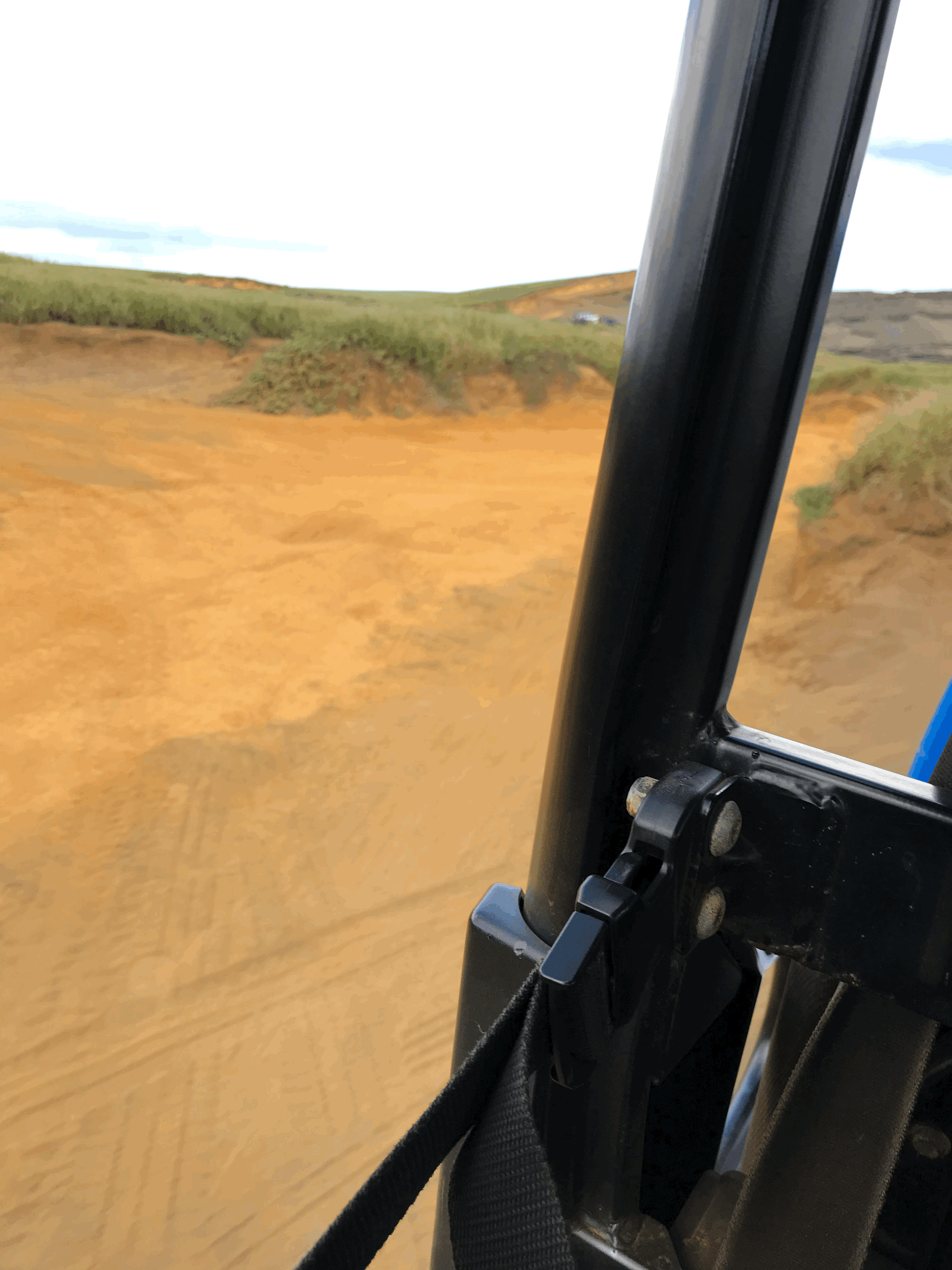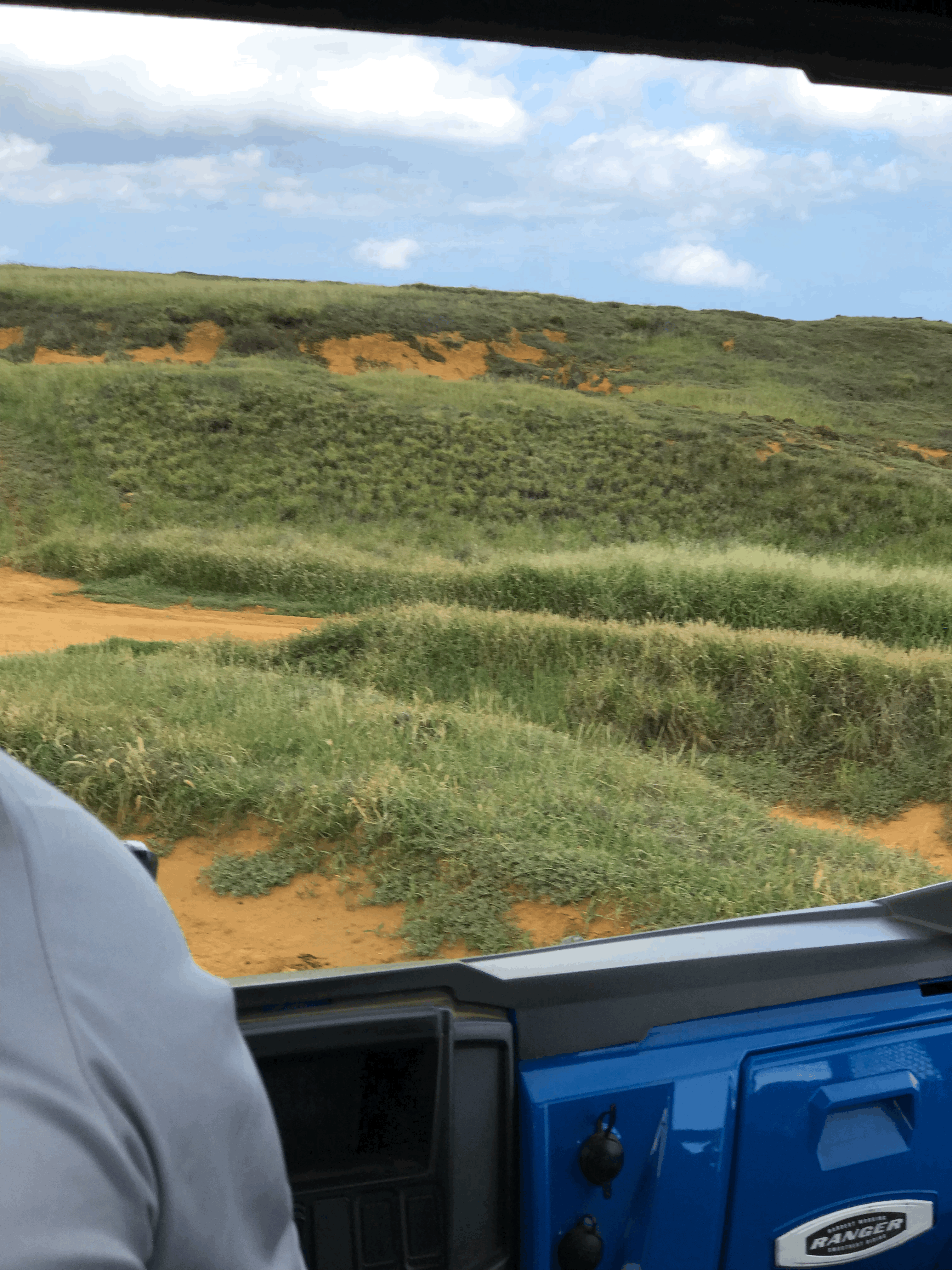 Once arriving at the parking area, you can hike your way towards the beach over rough terrain, but it did look pretty tricky in places - even though the initial path looked quite good. It was also a fair hike and in hot conditions with no shade or anywhere to stop for refreshments along the way, it wasn’t something any of us fancied doing. So, it ended up with the four of us negotiating a price to be taken by an open top jeep. This was an amazing experience, if not a little bumpy, and at a couple of points we were met by another vehicle coming the other way – this was off-roading at its best! The weather was perfect and the views incredible. We experienced a real contrast between green fields and coastline with beautiful cliffs beyond.