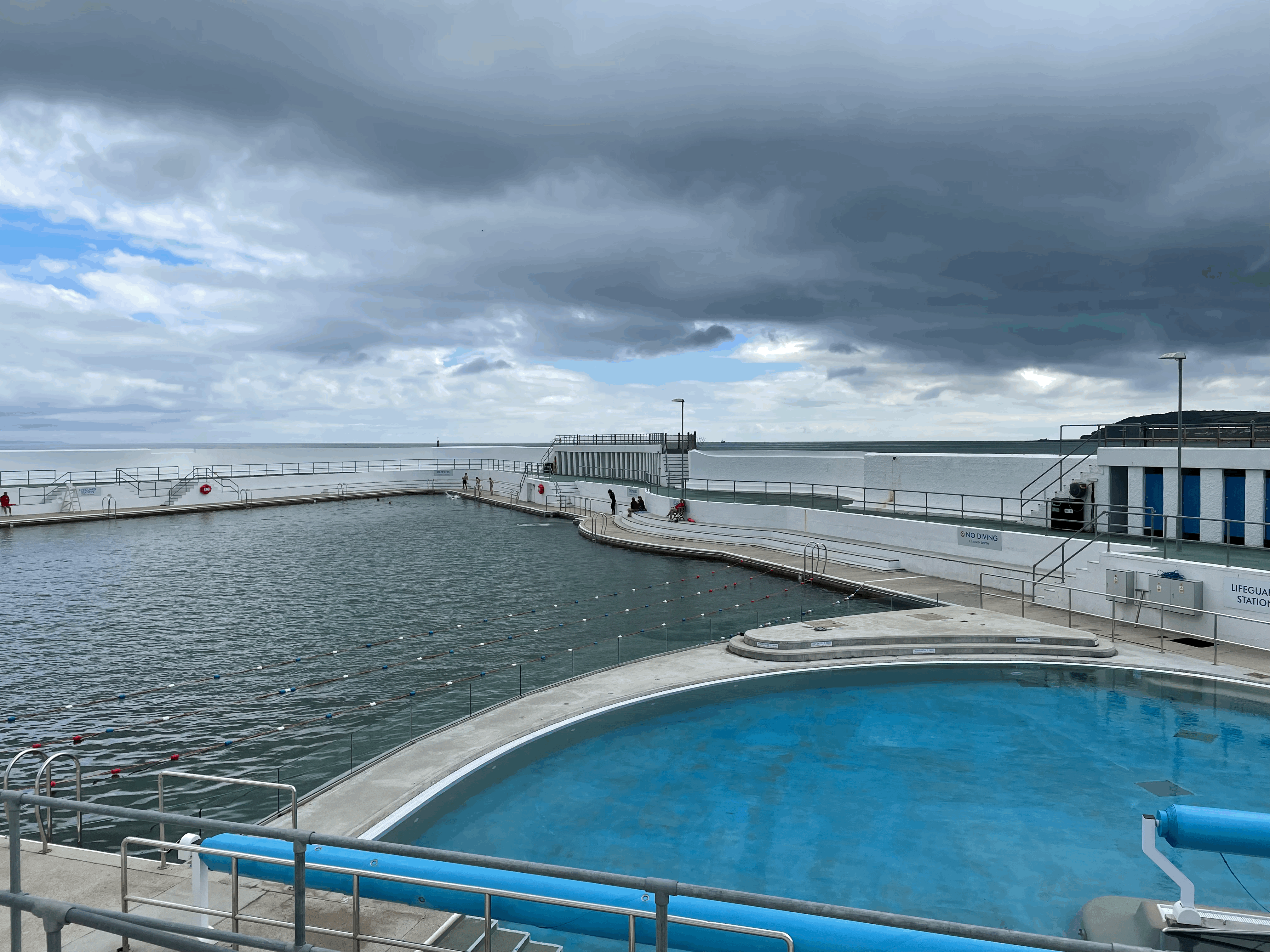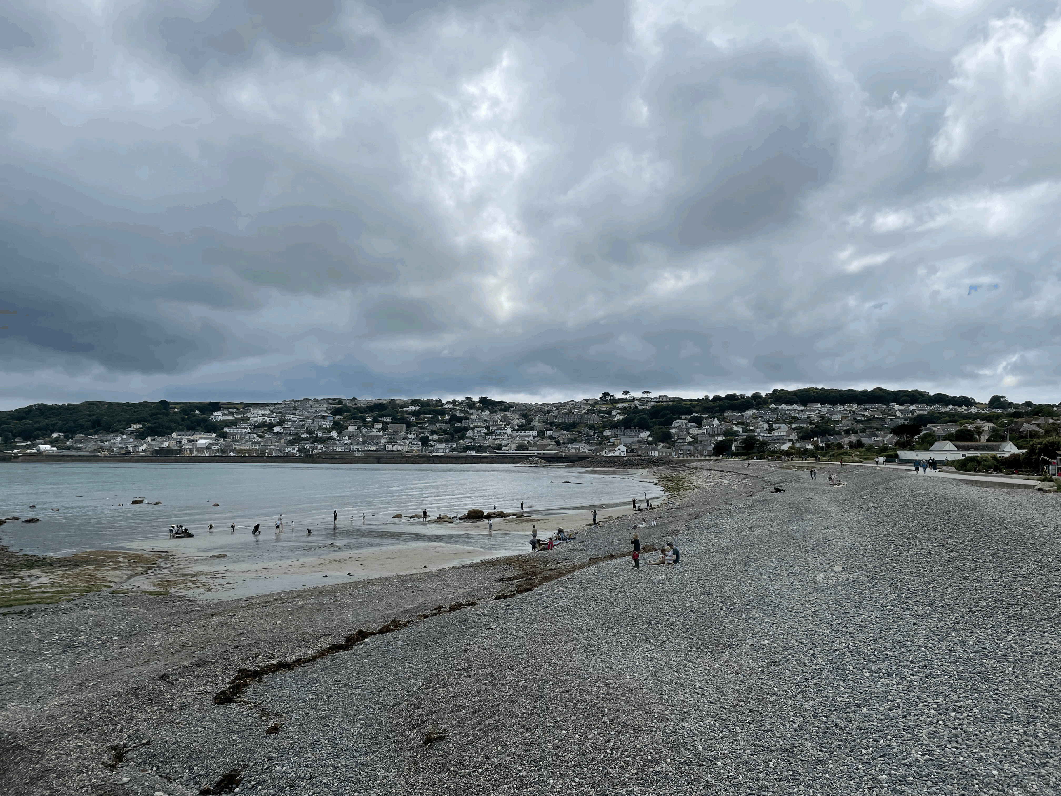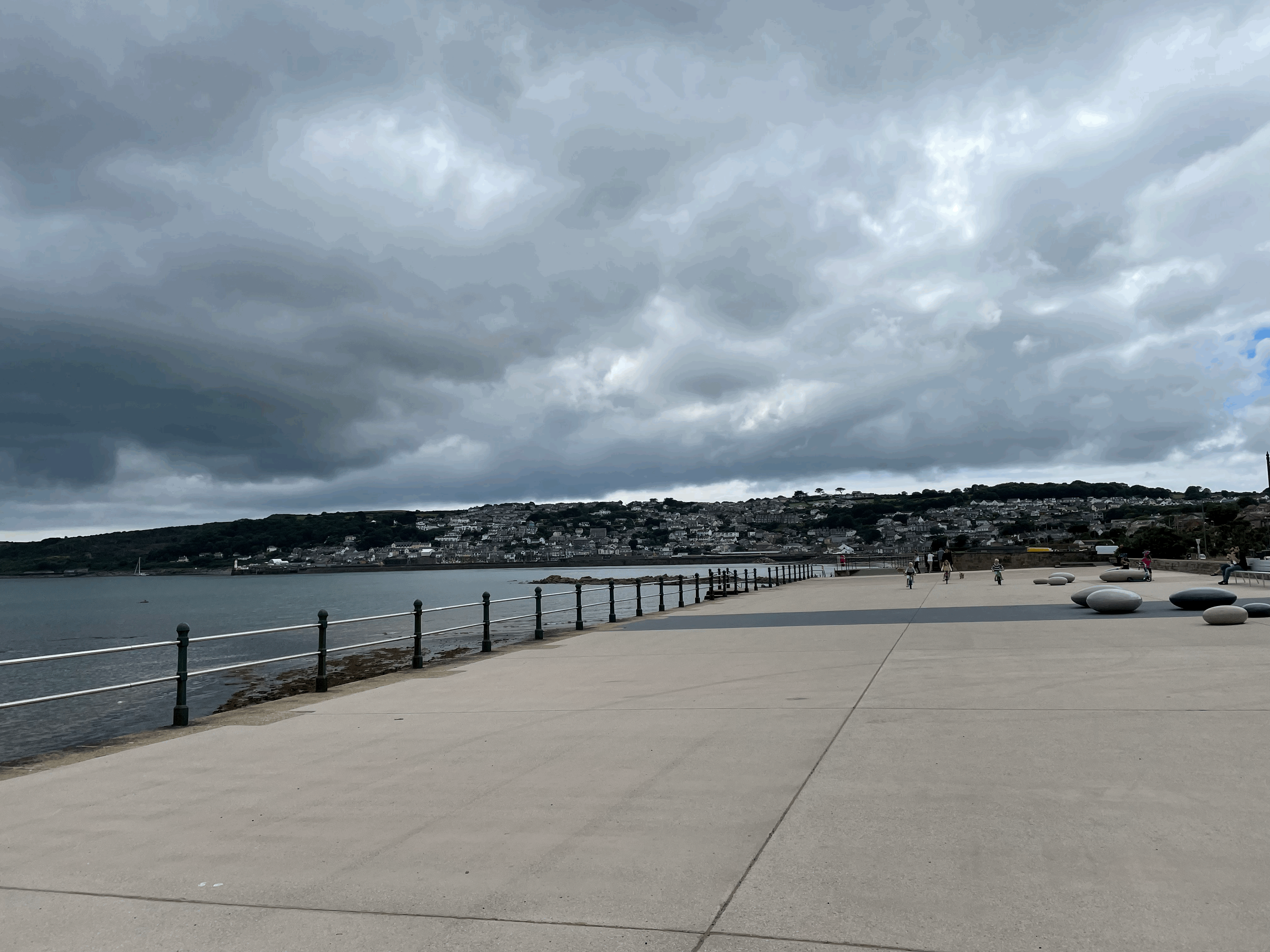 On arrival in Penzance, we walked to Battery Rocks which is a rocky headland to the south of Penzance harbour. The name is derived from a gun battery that existed here in the 1700s. It was fairly deserted here other than a few brave swimmers, who had to admit that the sea was a little on the cold side! Standing on top of the sea wall at Battery Rocks is the Penzance War Memorial. After taking a few photos, we continued to walk in the direction of the promenade, passing the Jubilee Lido pool on the way. The promenade is quite wide, but it eventually narrows as it leads to a coastal path. The path meanders towards New Lyn, which is a quaint little village with a stream running through it. The village also houses the best ice cream shop in the U.K. called ‘Jelbert’s ‘that is owned by the family of Olympic gold medallist rower, Helen Glover. This ice cream didn’t disappoint and came complete with a chocolate flake and dollop of Cornish cream – what more could you want!
