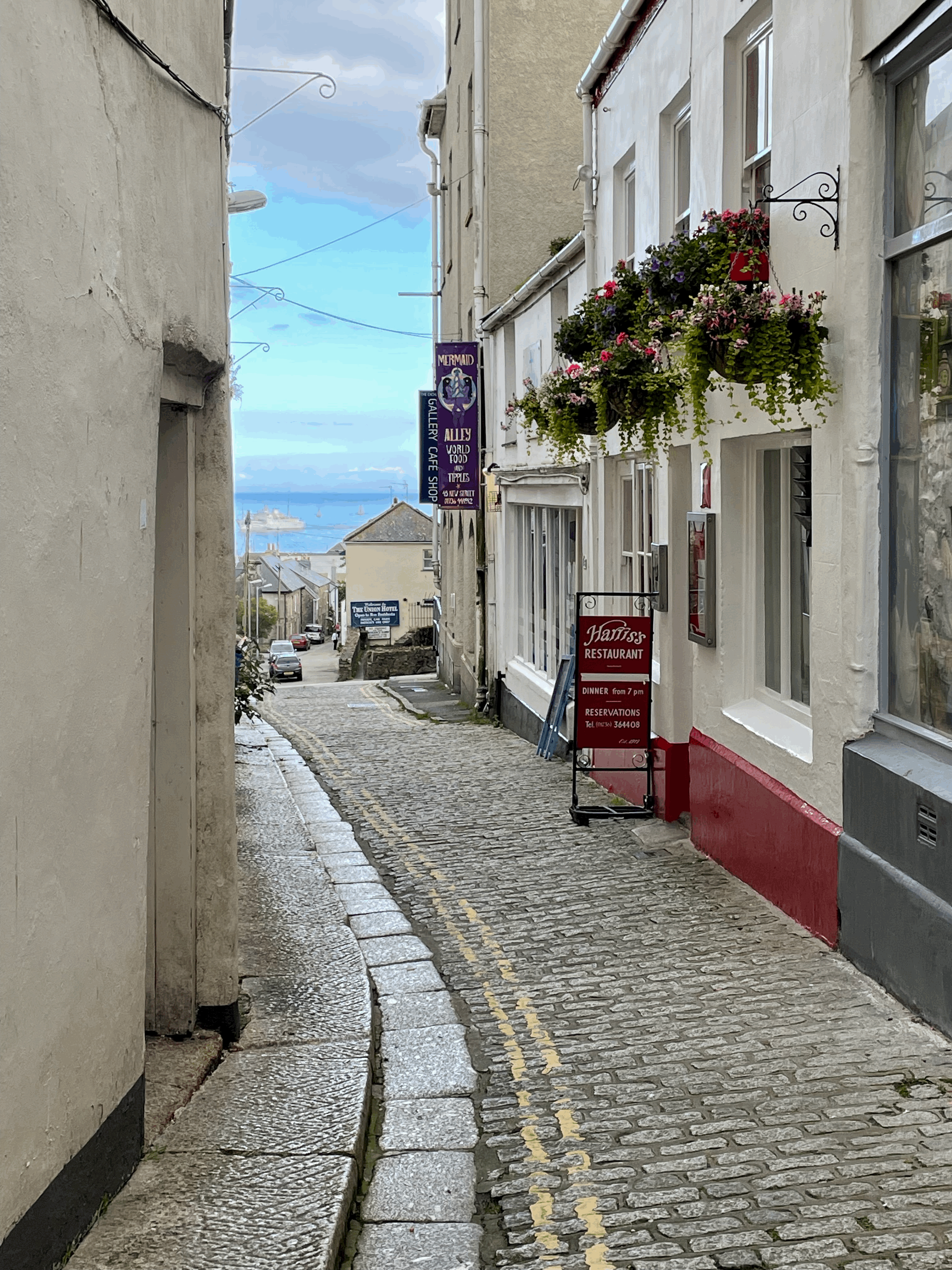 Eventually, it was time to head back to the centre of Penzance and so, as it would have been a long walk back, we decided to get a bus from the top of the road. We then had a short stroll around the centre of Penzance and down Chapel Street, before ending up at the quaint Mermaid Alley restaurant for a bite to eat. This was a lovely place to eat with extremely good food, and only a short walk back to Penzance station at the end of the evening.