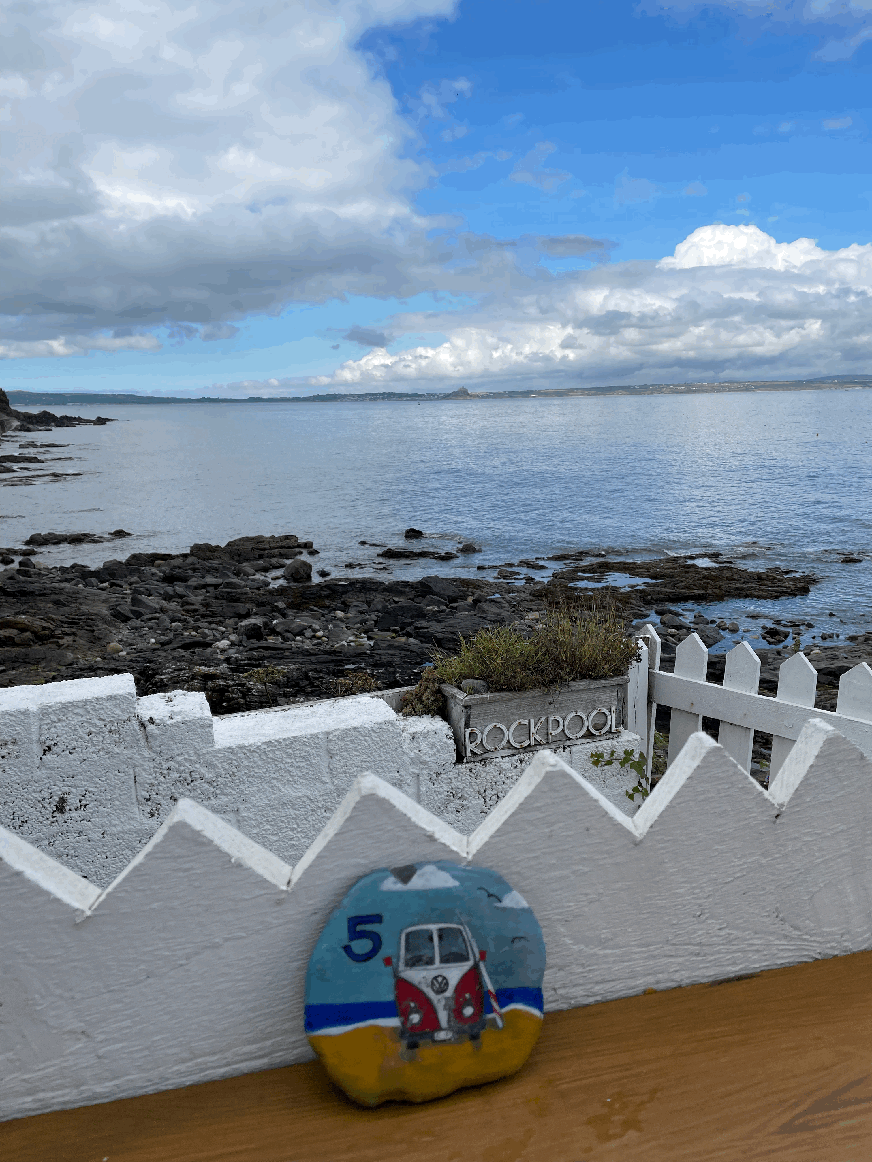 After sitting on the bridge to take a break and eat our ice creams, we continued our walk all the way down the coast, past the harbour and into the pretty fishing village of Mousehole – a great place to get some stunning photos. We also found a beautiful little café here called ‘the Rockpool’ to get some drinks from that was practically on the beach – a beautiful location to sit and relax in.