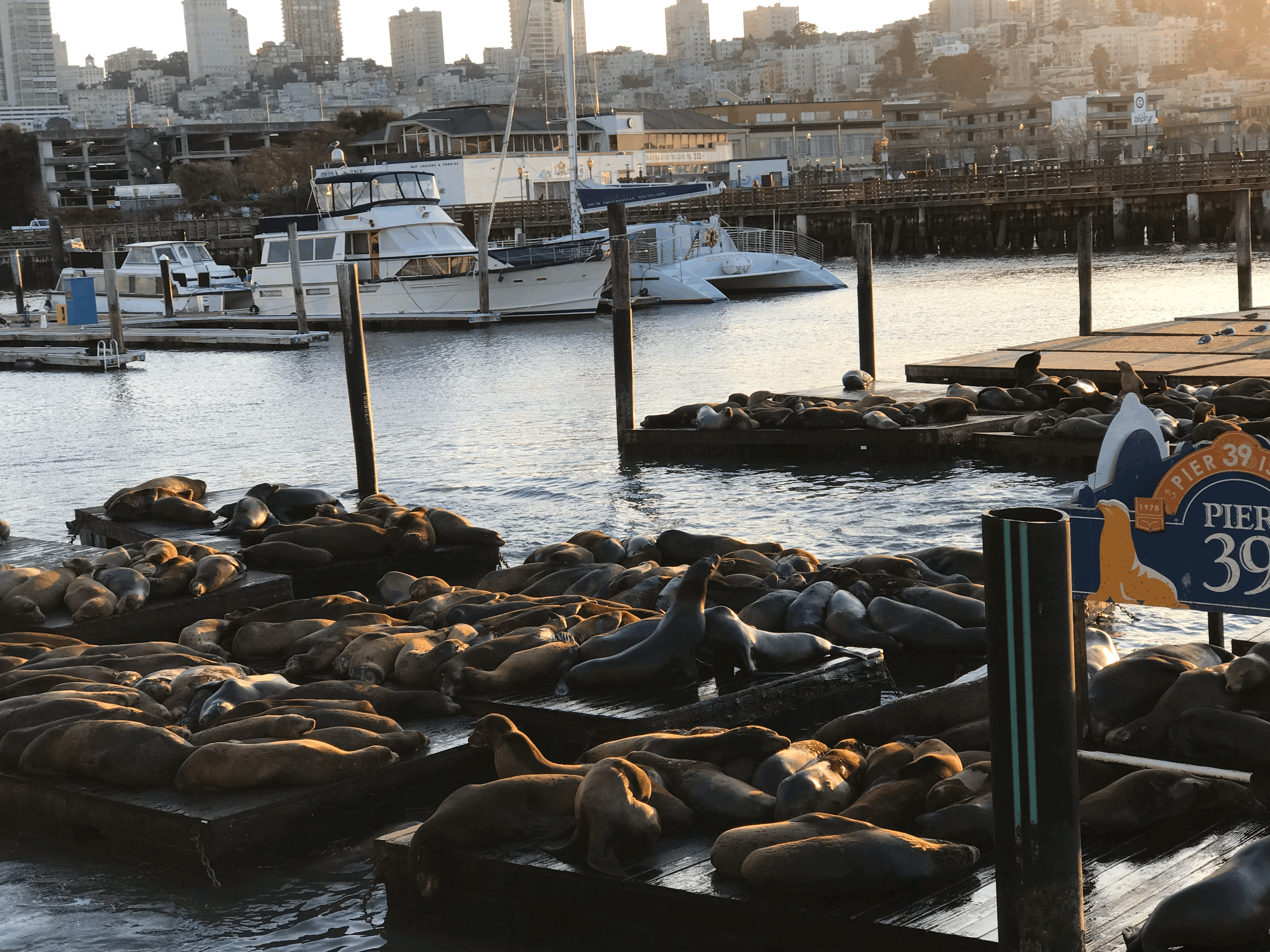 On my return from Alcatraz, I took a short bus ride to Pier 39, which has an array of eateries, shops, a 300-birth marina, and street entertainers - not to mention the lovely sea lions who camp out on the dock and make plenty of noise! They have apparently been at the dock since 1990. This was a lovely place to spend a few hours and filled me with some more lovely memories to complete my day.