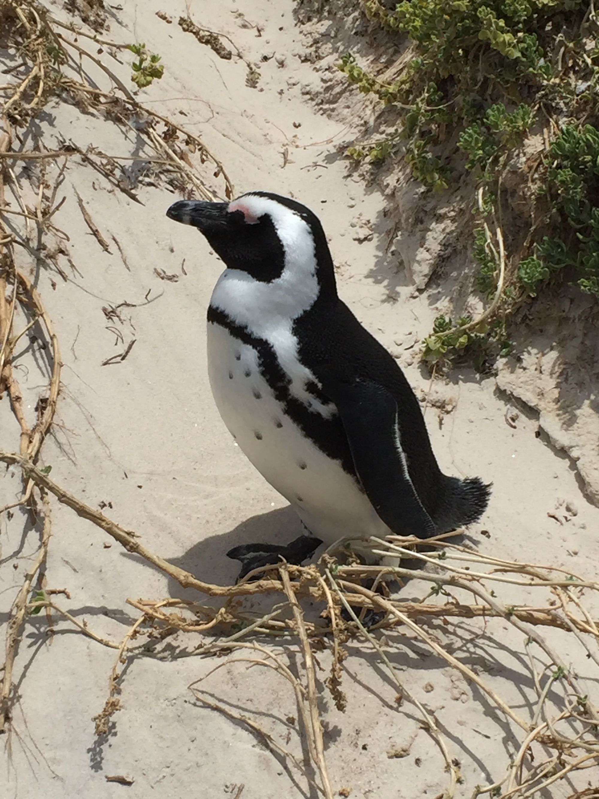 We made our way towards Cape Point on yet another cloudless morning but, on the way, we couldn’t miss calling in at Boulders Beach to see the well-publicised African penguins. These beautiful and increasingly endangered little critters can be seen in large numbers across the white sands of Boulders Beach, near Simon’s Town on the Cape peninsula. This is the only place where you can get close to these penguins. Boardwalks have been set up for ease of walking and protection of the birds, and some of the penguins come right up to the boardwalks so that you can get a close encounter - but be careful, as they do bite!