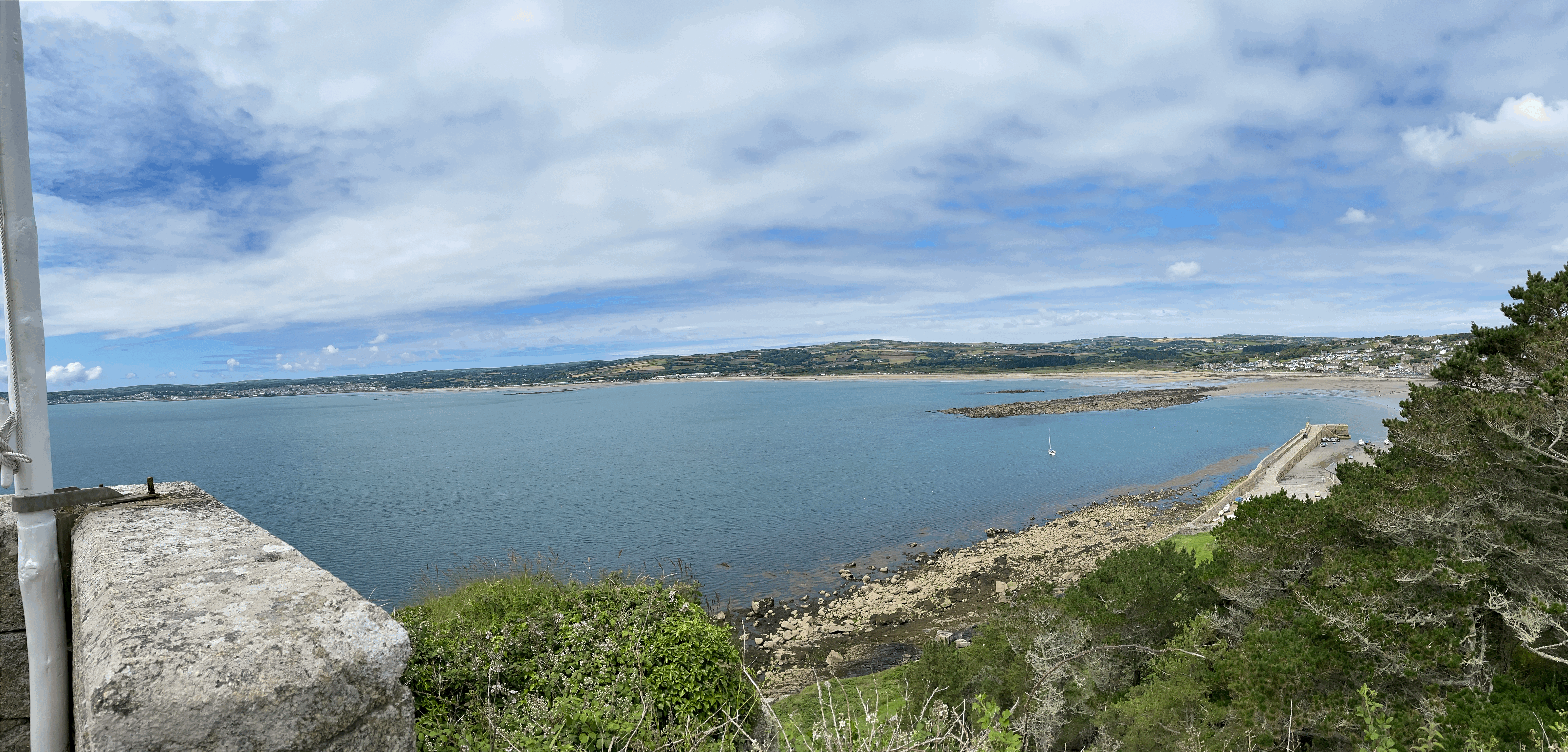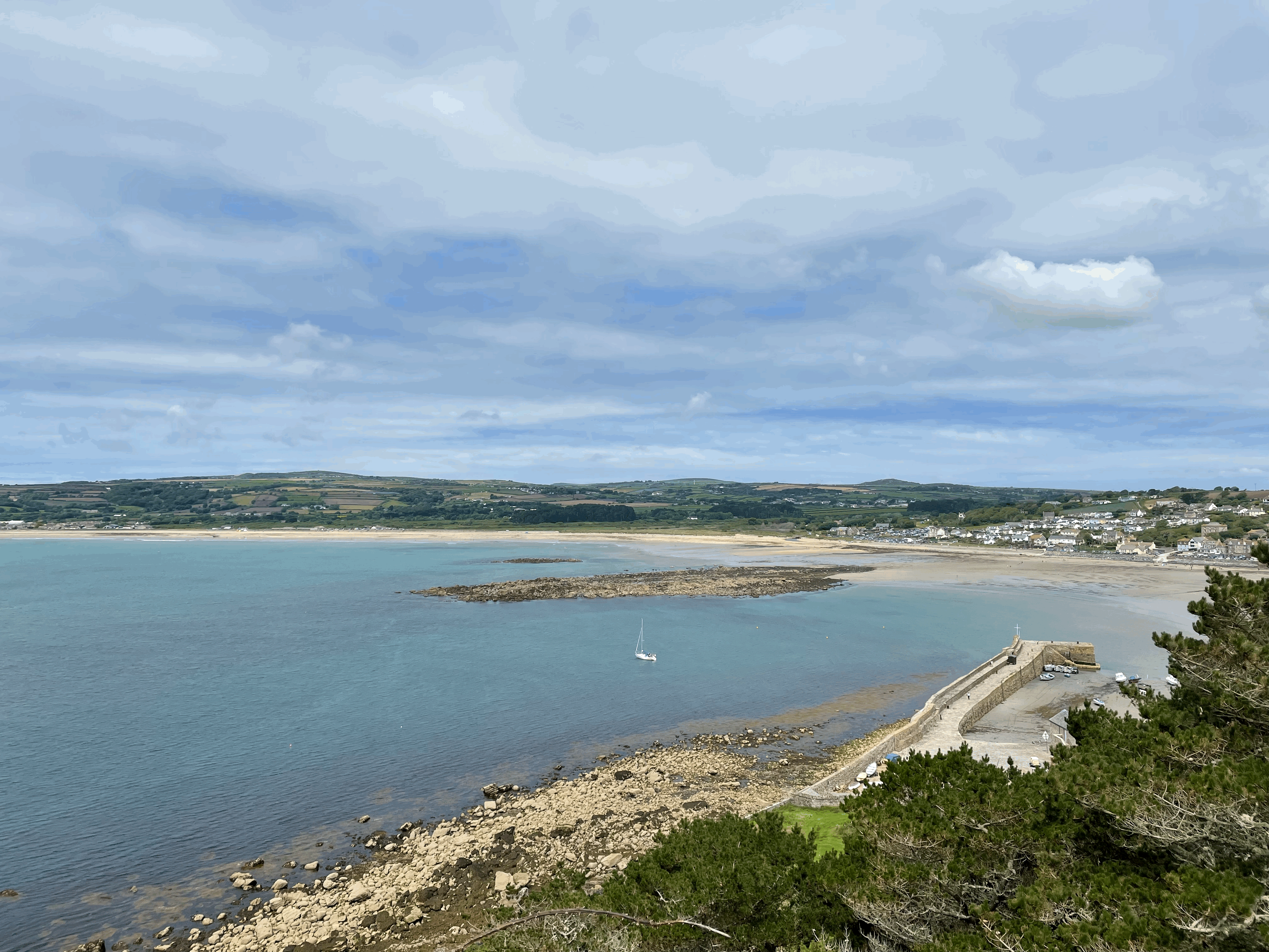We completed the day by finally going on a long walk by the coast and down some country lanes to get a bus into Hayle for a look round before returning to St Erth on the train. As we set off for our walk, we noticed that the tide was starting to come in around the Mount and the walkway was soon covered in water – there were one or two people actually wading across!