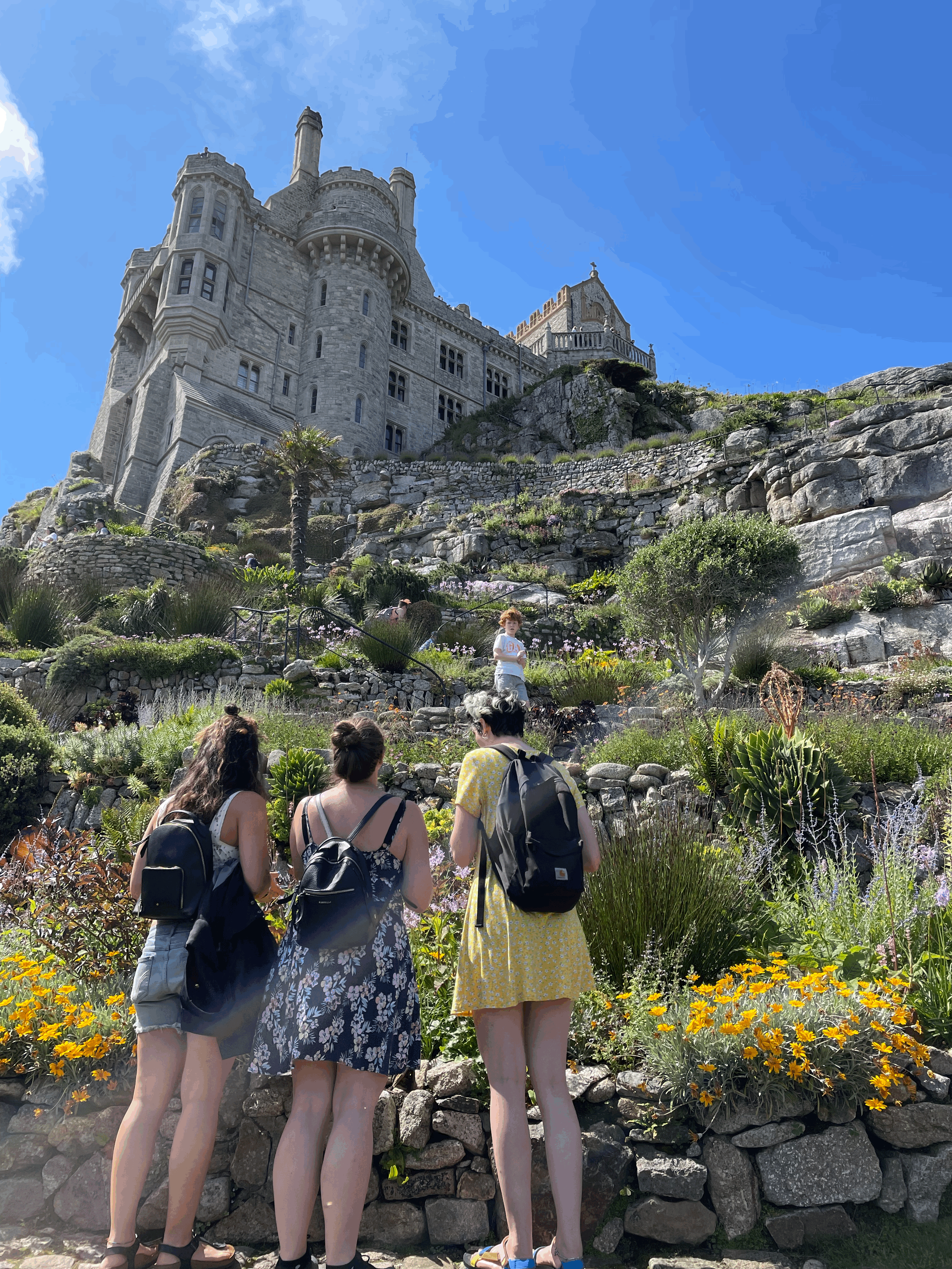 This time, we got a bus from St Erth station that took us to Marazion. Marazion is a beautiful little village right by the sea walk that takes you over to the Mount. Like the Eden Project, we booked the tickets for the Mount and castle online in advance. We chose to go over on foot when the tide was obviously out. When you book the tickets, it tells you whether the tide is in or out and whether you need to book a boat across or not. It was a lovely walk over there and easy to do in ordinary footwear.
