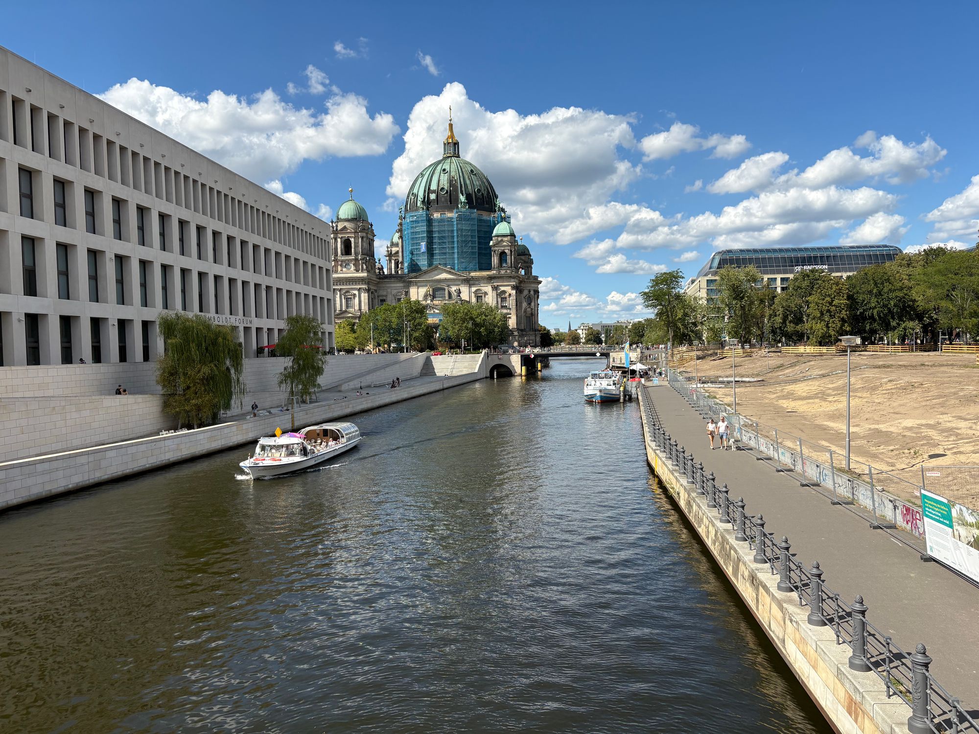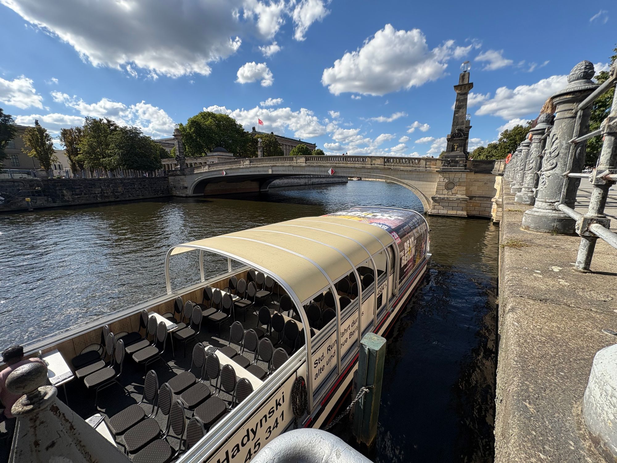 I was close to the River Spree at the Tower, so after my visit here I decided to head across to the river whilst it was such a gorgeous day and see if I could get a trip on one of the many river boats that are available. I just happened to spot a little ticket office by the river that did 1-hour boat cruises with an English-speaking guide. The lady was telling me that many of the boats just have recordings now instead of an actual guide. The tour company I used was www.reederei-hadynski.de and was cash only at the desk, but it wasn’t expensive, and you can hop onto this website and book cruises on there too. The cruise was most enjoyable, and the guide was really entertaining. Quite a few of Berlin’s main historical sites can be viewed from the river. There was a covered area to the back of the boat, which was welcomed in the extreme heat of the day, and you could purchase drinks and ice creams onboard. The boats run all day until about 5pm.