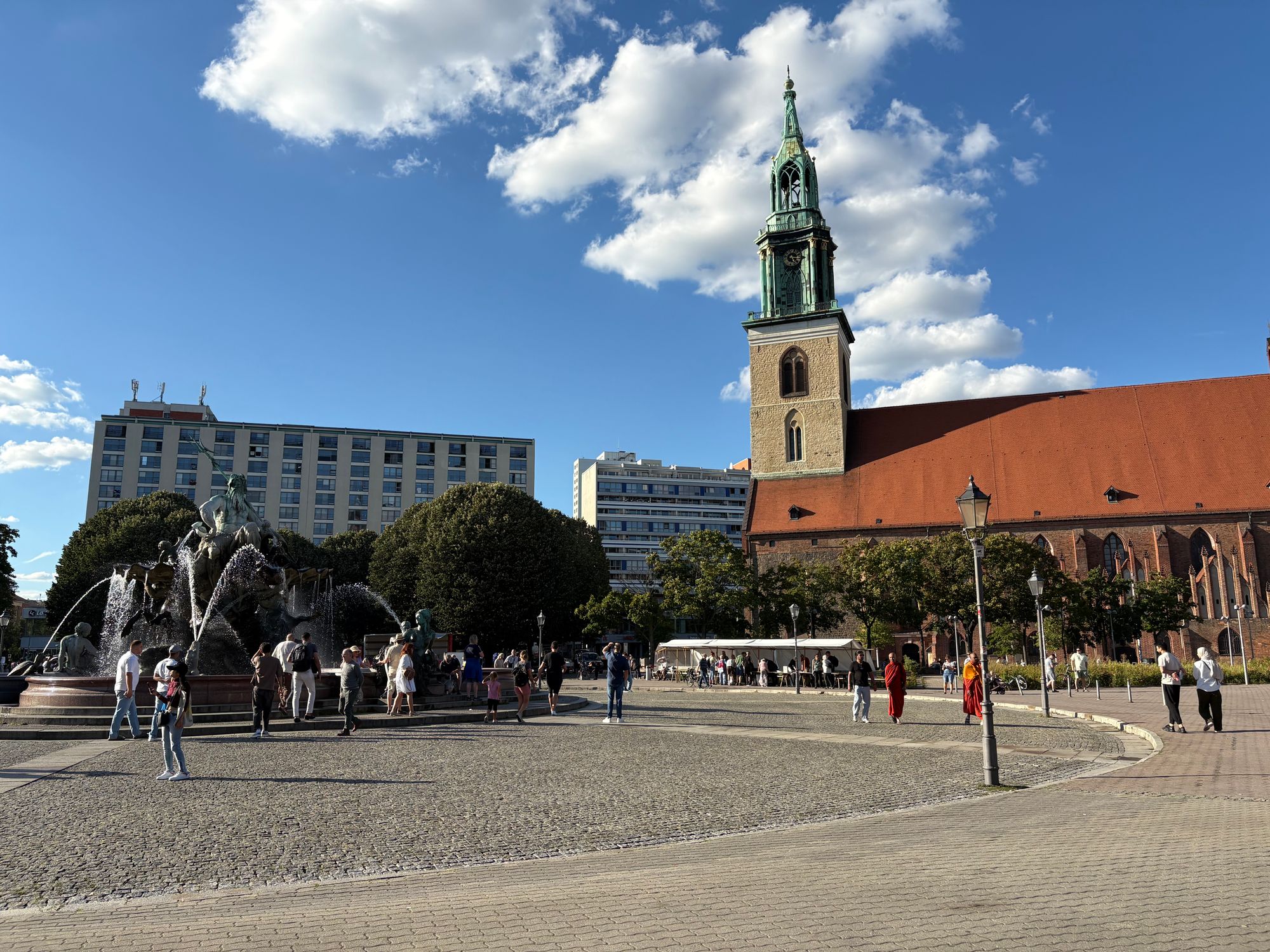After the boat trip, I walked along by the river for a short way before deciding to stop off for some refreshments so that I could soak up more of the atmosphere and enjoy the views for a bit longer before making my way over to the Neptune Fountain. The fountain is lovely and was designed in 1891 by Reinhold Begas, and has Neptune, the Roman god, in the centre. The beautiful fountain is said to be one of the most beautiful fountains in Berlin. This popular meeting place for tourists and locals is positioned between the Red Town Hall and St Mary’s church.