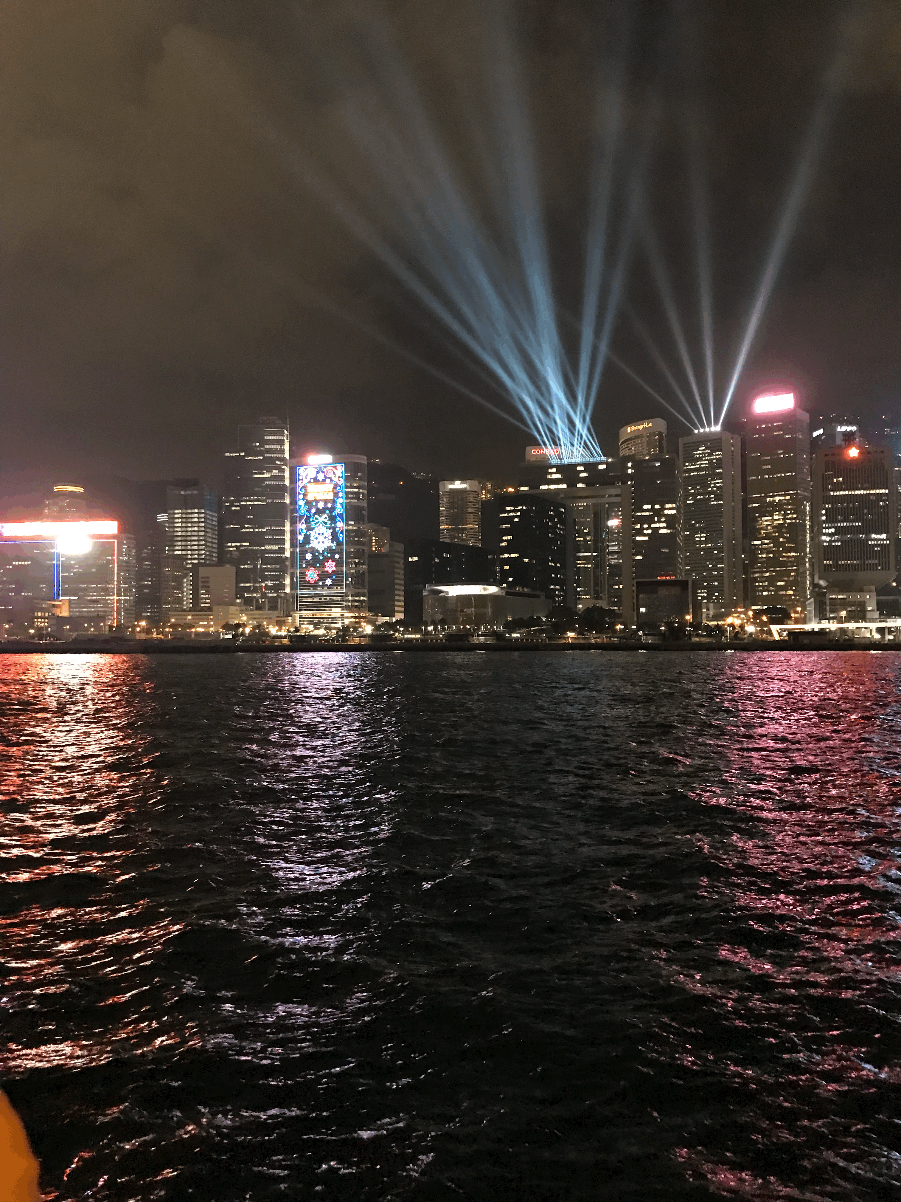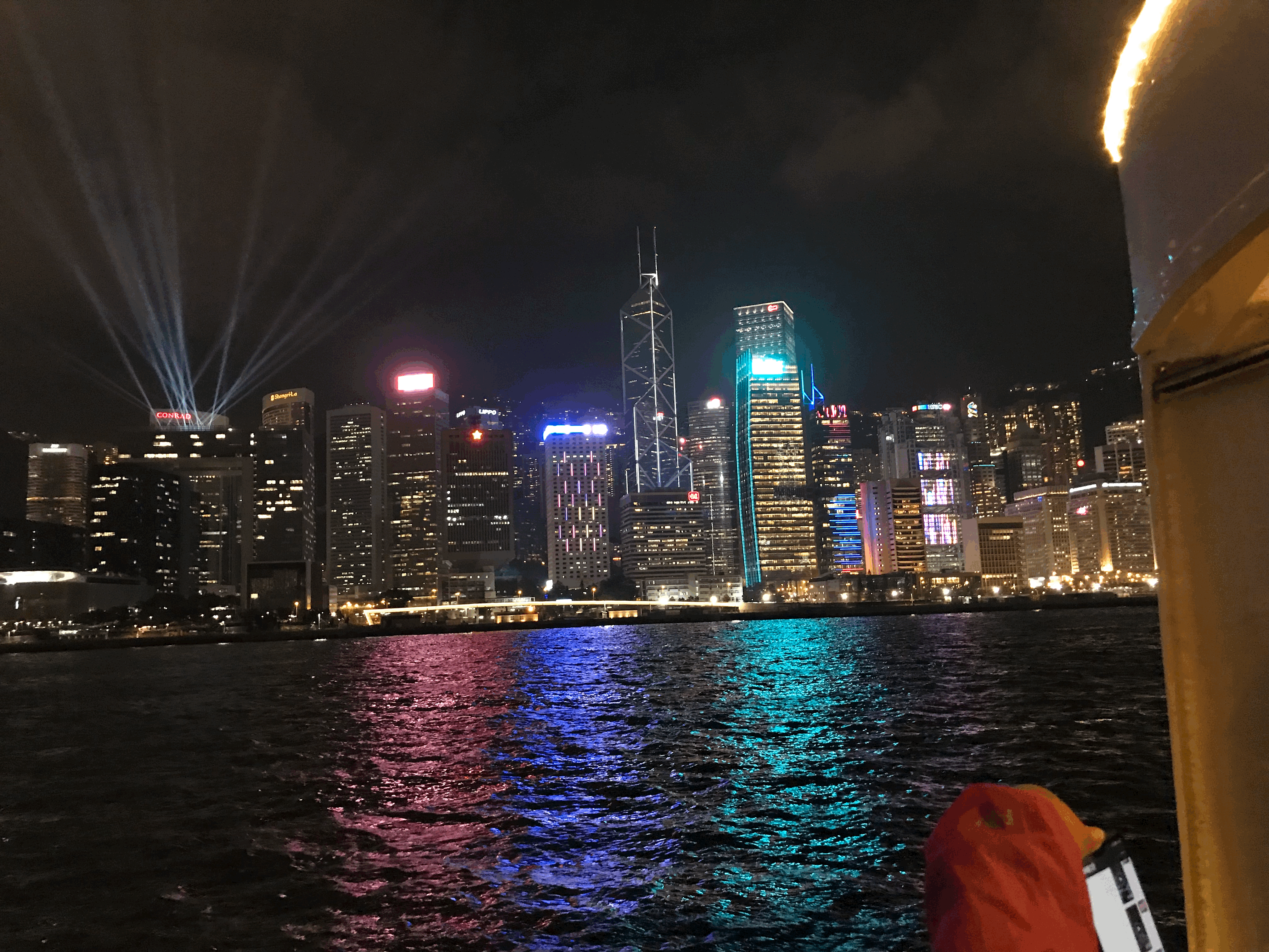 After a memorable trip to the Peak Tram, I made my way to HK Central and then walked along by the harbour. I loved the experience of arriving in Central HK in the afternoon and then gradually watching the light of the day disappear and the whole area begin to come to life with an array of twinkling lights against the black sky. I also managed to book a trip on a traditional junk boat to do an evening cruise out in the harbour for the Symphony of Lights show that is displayed every evening at 8 pm. This laser show was beautiful and, even though it only lasted for about ten minutes, it seemed a lot longer. Definitely worth experiencing if you take a trip to HK Island.