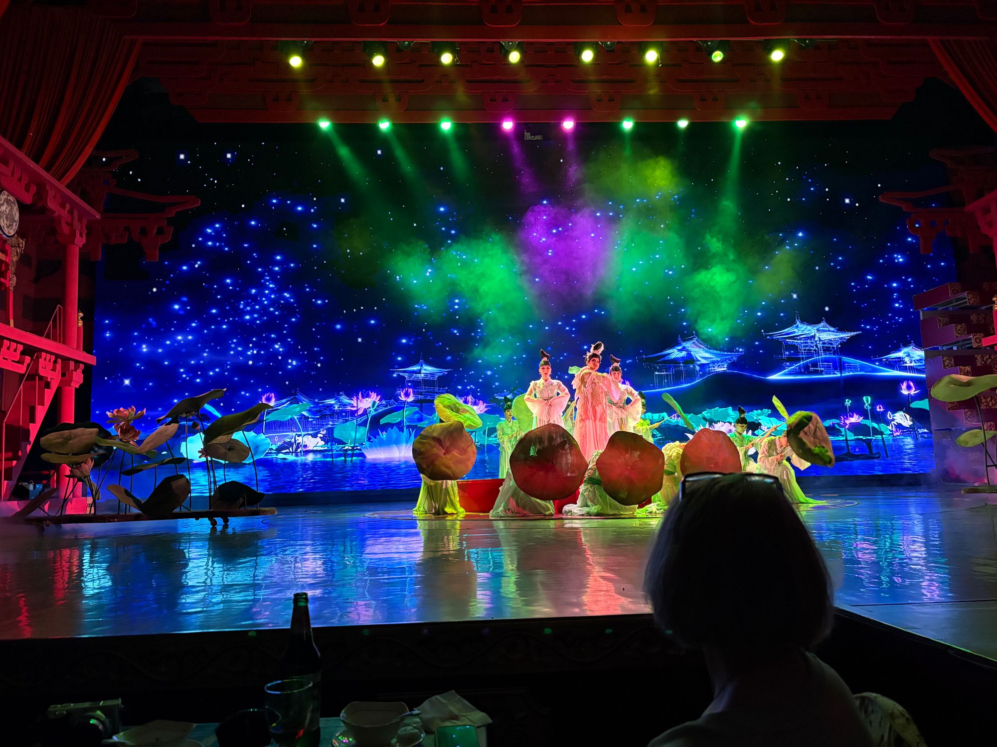 The evening was full of more new experiences and saw us begin by indulging in a Tang Dynasty music and dance show that included a dumpling banquet. The tables were all set up in front of the stage, so it was a little like attending an award ceremony of some kind. The show was full of colourful costumes, stage sets and dancing to showcase the Tang Dynasty culture. The dumplings were delicious and came with a variety of fillings, including, tomato, chicken, fish and pork.