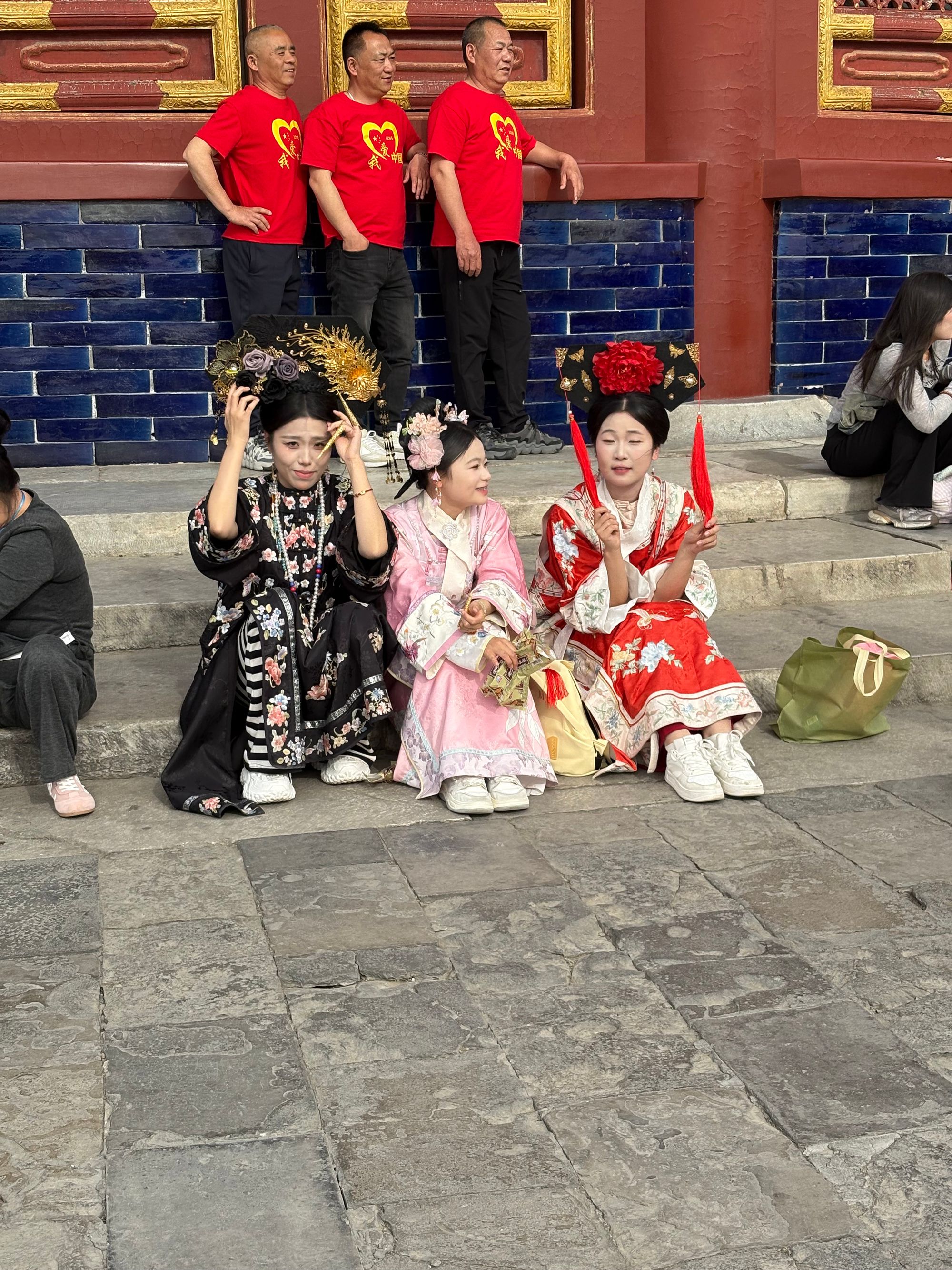 It was soon time for a well-earned break for lunch before embarking on an afternoon visit to the Temple of Heaven to complete our tour of Beijing’s UNESCO sites. The Temple of Heaven is a complex of Imperial religious buildings and was once used for annual prayer ceremonies to ask for a good harvest by the emperors of the Ming and Qing dynasties. The temple became a World Heritage Site in 1998. I thoroughly enjoyed wandering around here and absorbing the atmosphere. In many places, including here, on our tour there were quite a few ladies dressed up in traditional Chinese costumes having professional photoshoots, as well as posing for photographs with eager tourists. Little did we know at this point that we would soon be participating in a little dressing up in Chinese costumes ourselves…