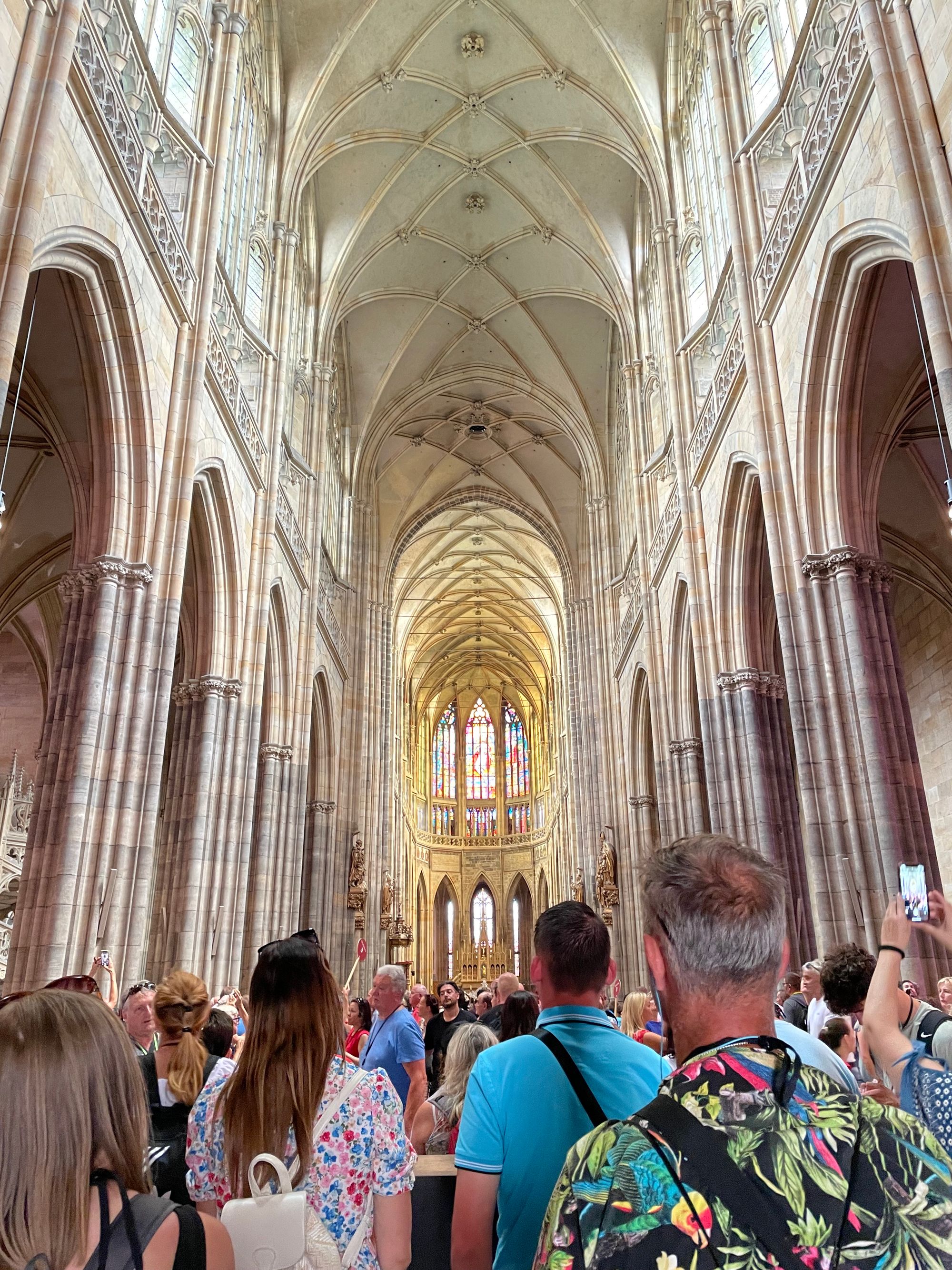 I then bought a ticket at the castle that incorporated four of the main buildings: St. Vitus Cathedral, the Old Royal Palace, St. George’s Basilica, and Golden Lane. You could pay separately to enter the Story of Prague Castle, the Picture Gallery, and the South Tower of St. Vitus Cathedral. I thoroughly enjoyed this experience, as it was quite unique, and everything was interesting and well presented. I particularly liked Golden Lane with its quaint and brightly coloured houses which gave you a glimpse of days gone by. This charming little street was built in the 16th century to house Rudolf II’s castle guards and takes its name from the goldsmiths that used to live there. The street was also once home to Franz Kafka who was a Jewish novelist based in Prague.