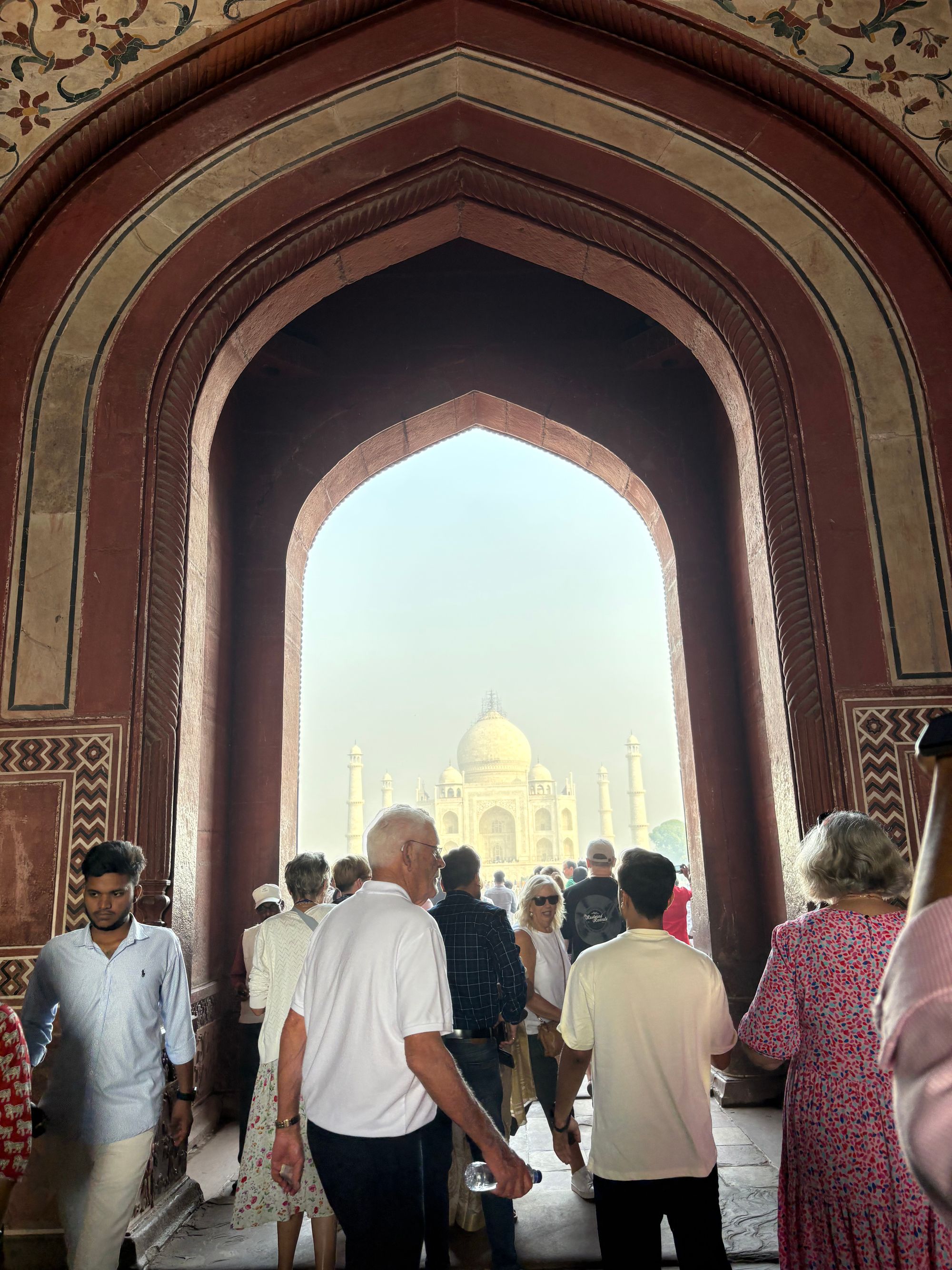 This morning was an early start after breakfast to visit the incredible Taj Mahal. I was really excited about this trip, and it was a nice clear day that would hopefully allow a clear viewing. Sometimes the Taj Mahal can be shrouded by early morning mist that can mar your view. Sunrise and sunset can be great times to visit, as these times can offer beautiful pink and blue hues and potentially fewer crowds.