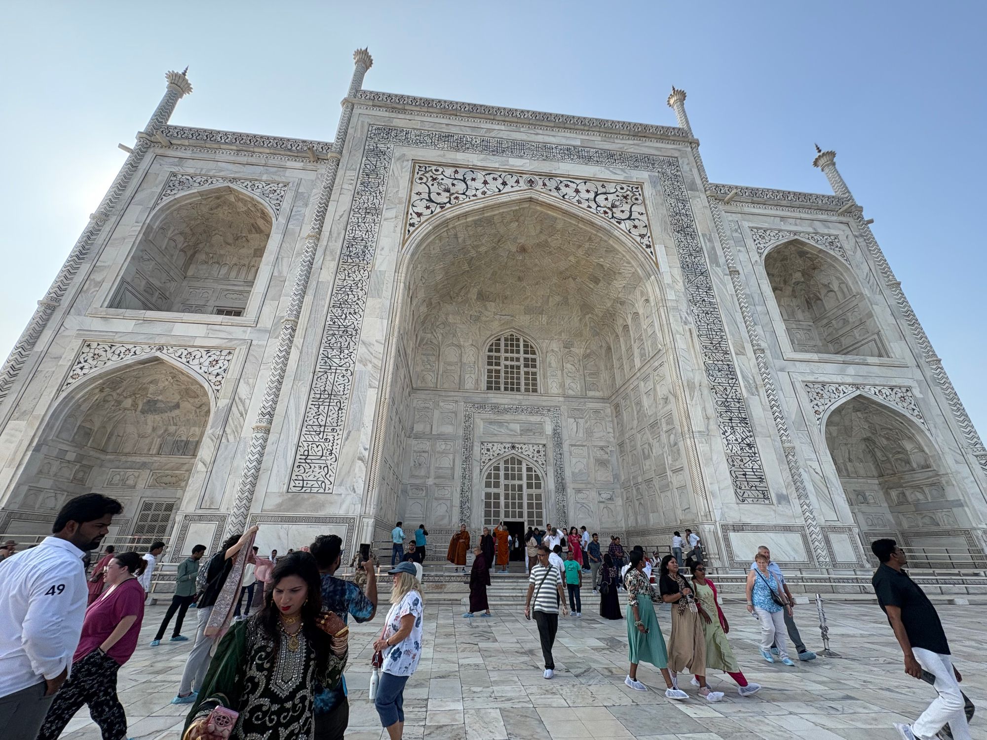 We spent a good couple of hours at the Taj Mahal, and it started to get quite hot as the sun got up because it reflected off the marble. There are also quite a few monkeys here in the grounds, but they didn’t cause any problems despite all the warning signs, and I did get one or two quick photos! I noticed that the Taj looked even whiter as the sky got bluer before I left, so I took a few more photos and you could definitely see a difference between the photos I took on arrival and the ones I took before I left. I was sad when it was time to leave, but it was such an amazing experience that I will never forget.